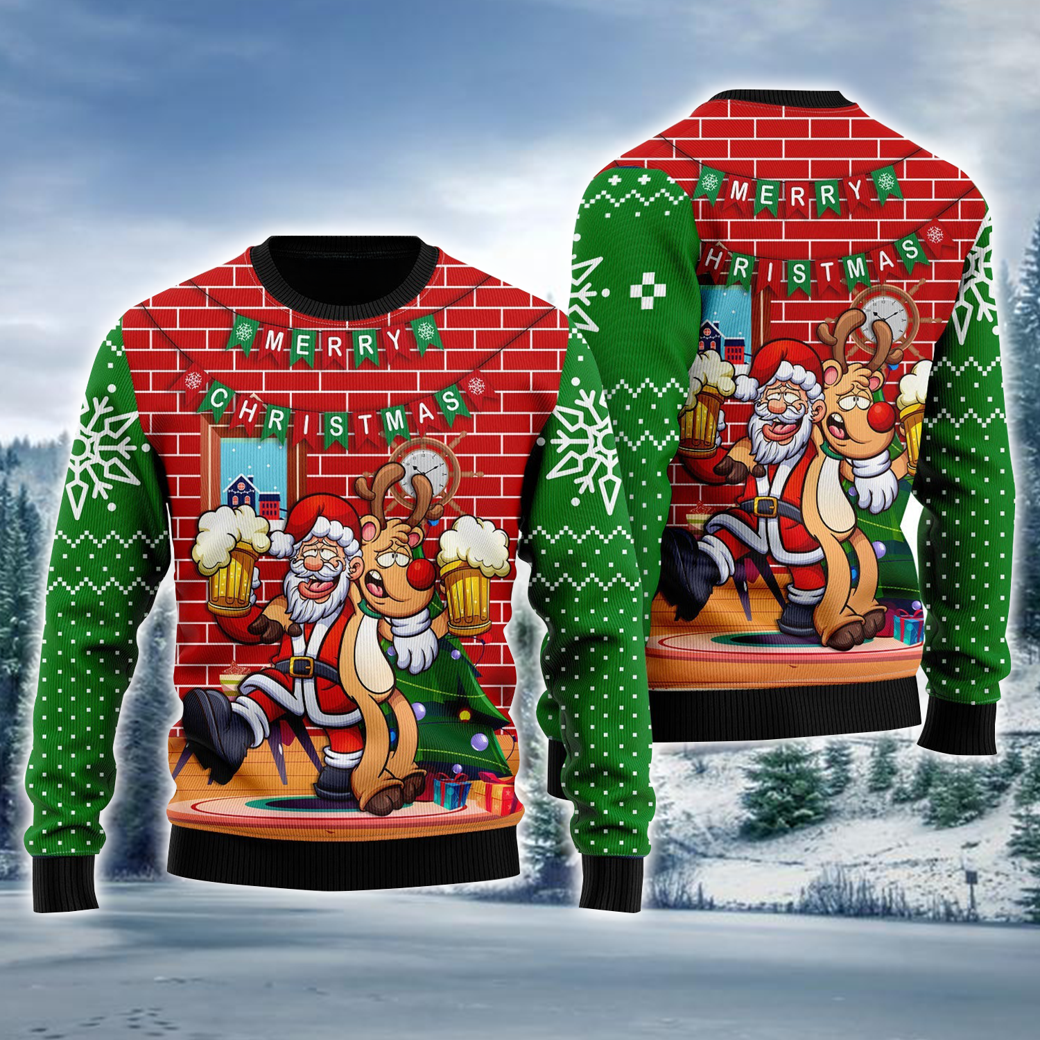 Big Foot And Dog In Snow Forest Ugly Holiday Sweater Cozy Jumper Sasquatch Themed Gifts