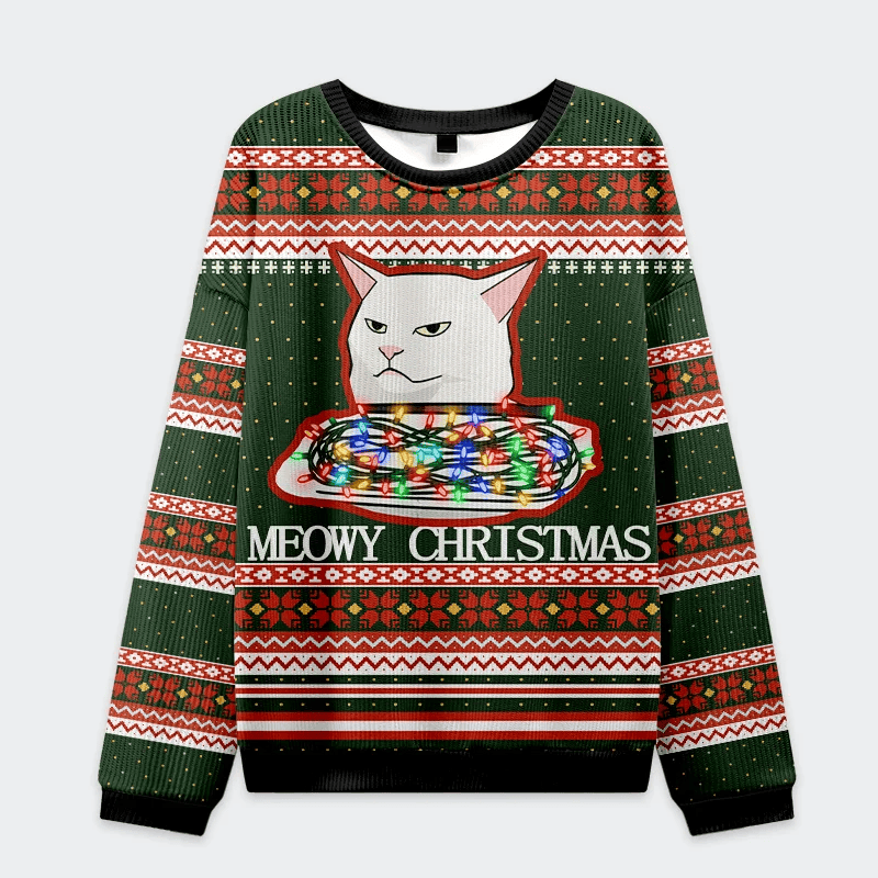 Meowy & Grumpy Festive Christmas Ugly Sweatshirt Ugly Christmas Sweater Womens Funny.