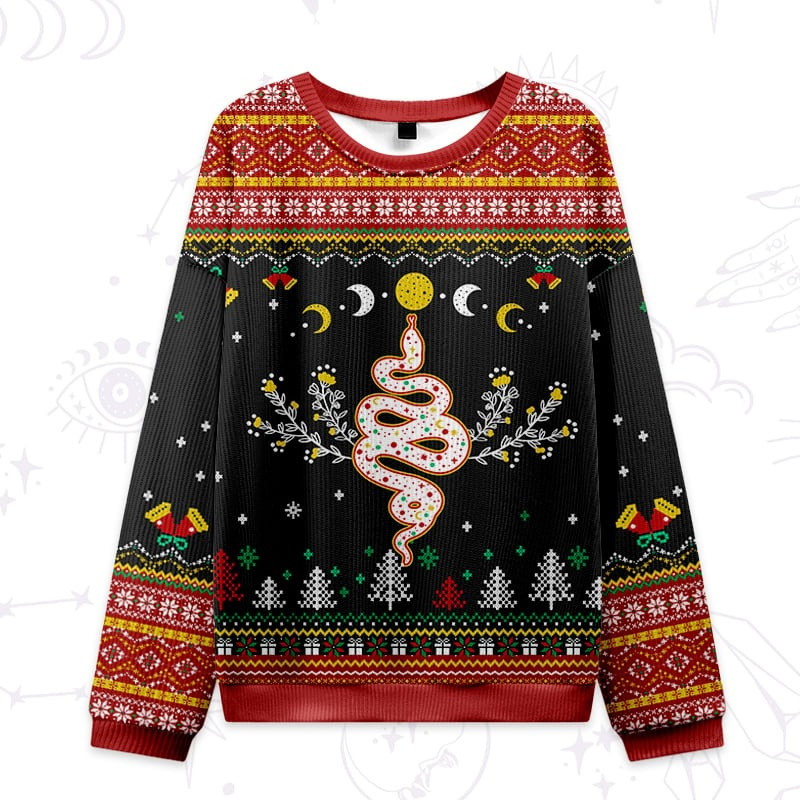 Snake And Moon Phase Ugly Christmas Sweater Xmas Apparel Presents For Holiday.