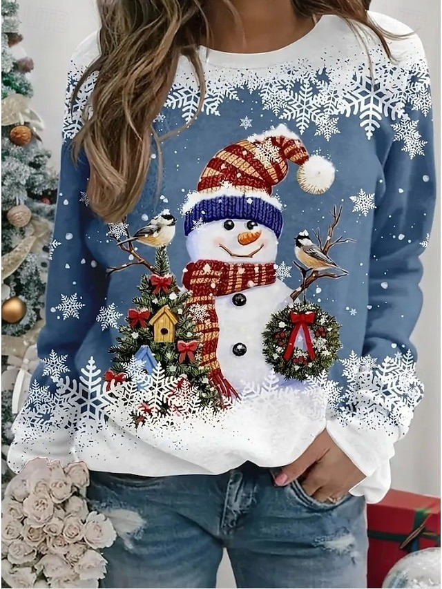 Bird Snowman Christmas Sweatshirt Cute Snowman Snowflake Outfit Cozy Winter Gifts For Her