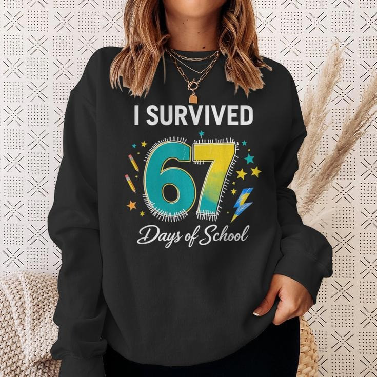 Gaming I Survived 67 Days Of School Sweatshirt Funny Pixel Clothing Gifts For Gamer.