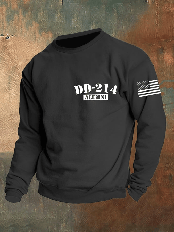 Men’s Retro Veteran Dd-214 Printed Crew Neck Sweatshirt Patriotic Veterans Day Crewneck Gift for Dad.
