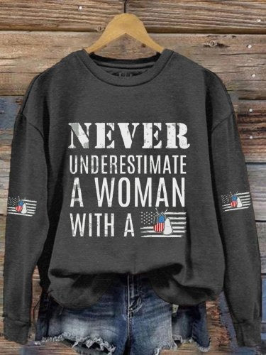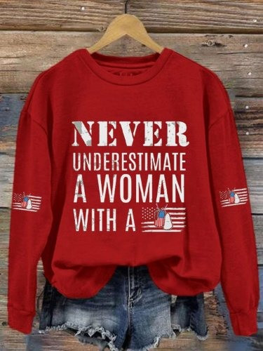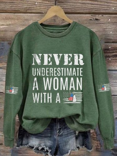 Never Underestimate A Woman Sweatshirt With A DD-214 Veterans Day Ideas Merch.
