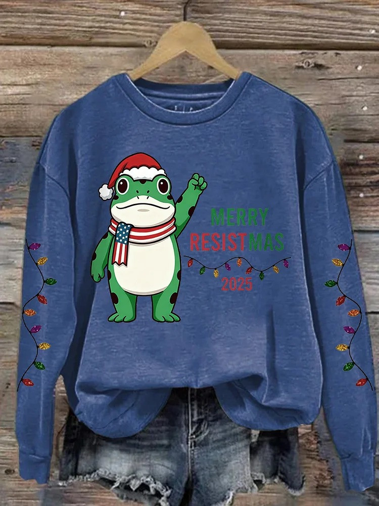 Portland Frog Merry Resistmas 2025 Sweatshirt Antifa Merch Christmas Presents For Wife.