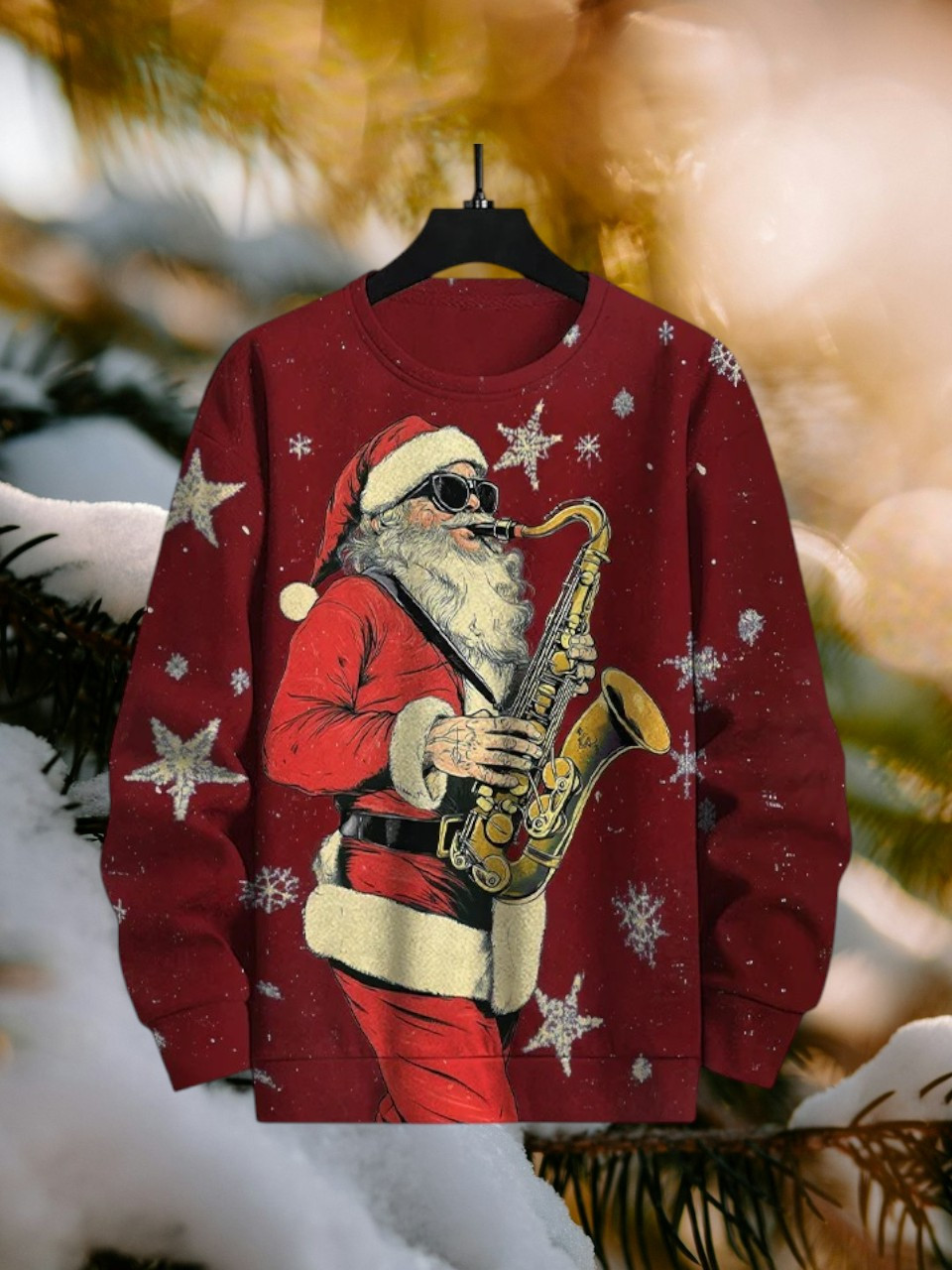 Santa Claus Playing The Saxophone Christmas Sweatshirt Best Christmas Music Themed Gifts.