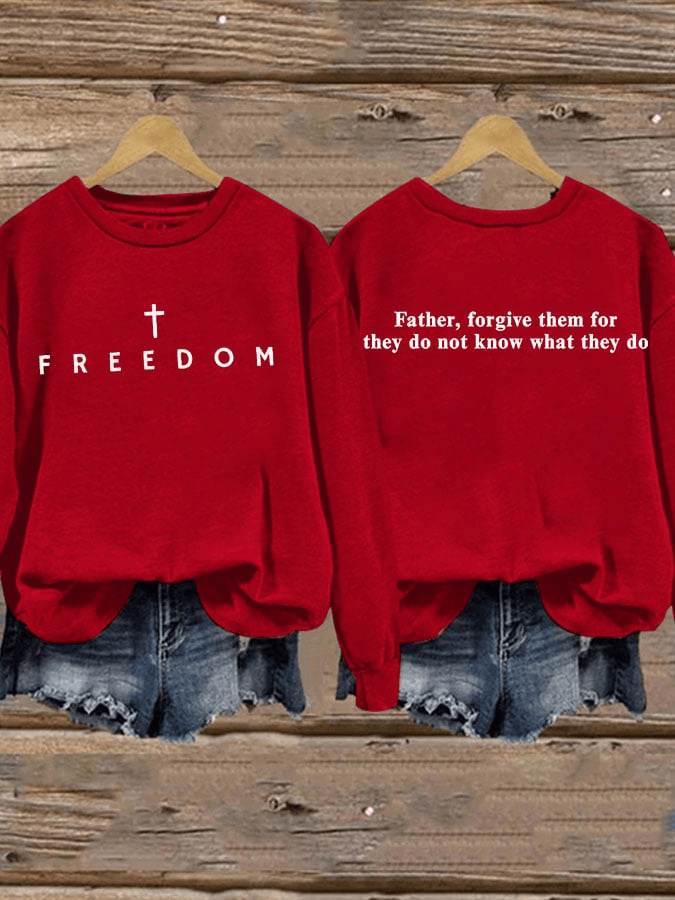 TPUSA Merch Women’s Freedom Charlie Kirk Sweatshirt Father Forgive Them For They Do Not Know What They Do Print Waffle Hoodie.