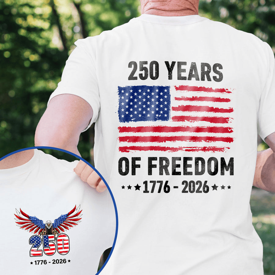 250 Years of Freedom T-Shirt 1776–2026 American Flag Patriotic Tee Gift for Husband.