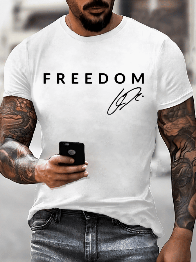 Men’s Red Freedom Shirt Charlie Kirk Signature T-Shirt TPUSA Charlie Kirk Merch Memorial Gifts for Husband.