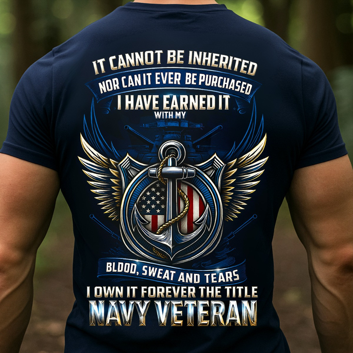Anchor USA Flag Navy Veteran T-Shirt I Have Earned It Blood Sweat And Tears Apparel Presents.