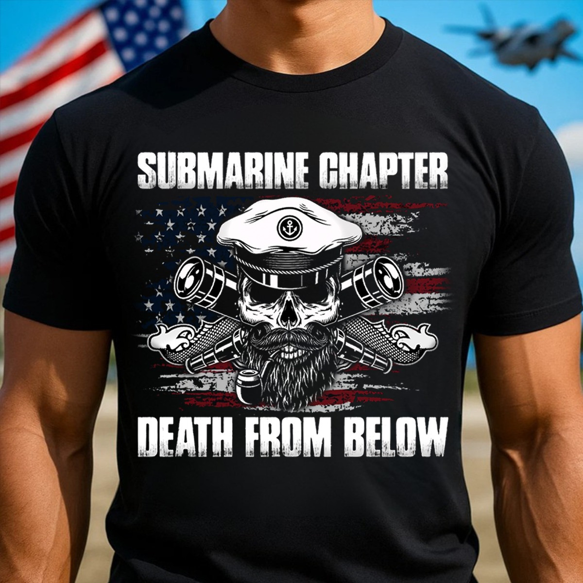 Bearded Skull Veteran T-Shirt Submarine Chapter Death From Below Navy Military Tee Presents.