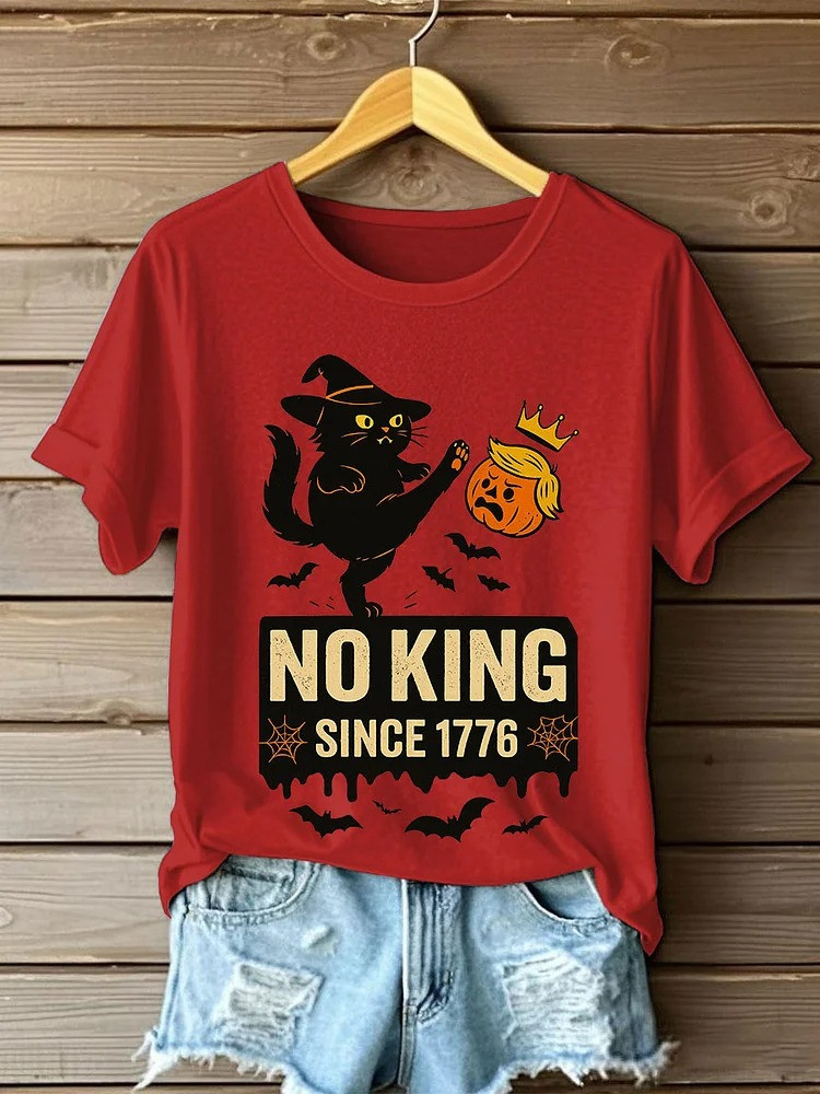 Black Cat No King Since 1776 T-Shirt No Kings Merch Spooky Themed Anti Trump Gifts.