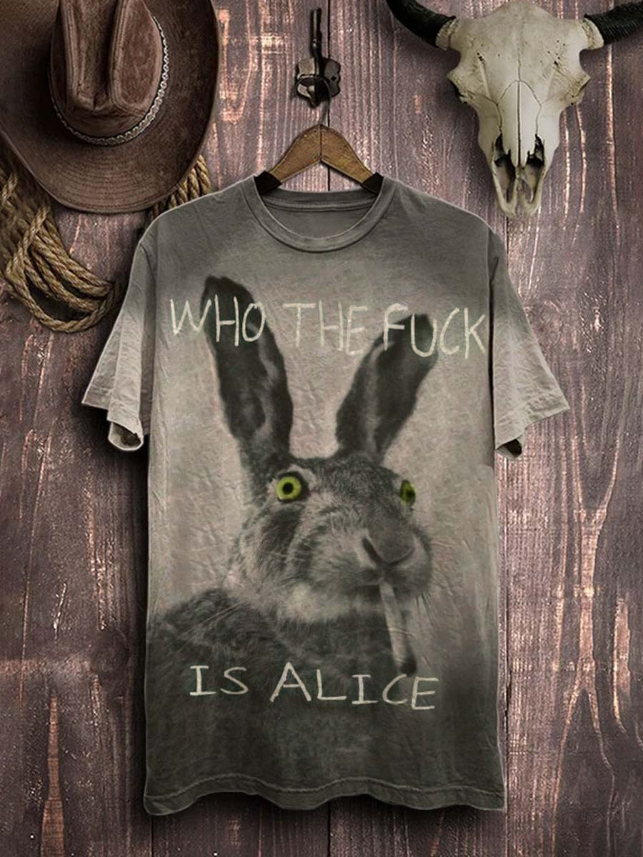 Bunny Who The Fuck Is Alice T-Shirt Bunny Smoking Funny Shirt Gift Ideas For Girlfriend.