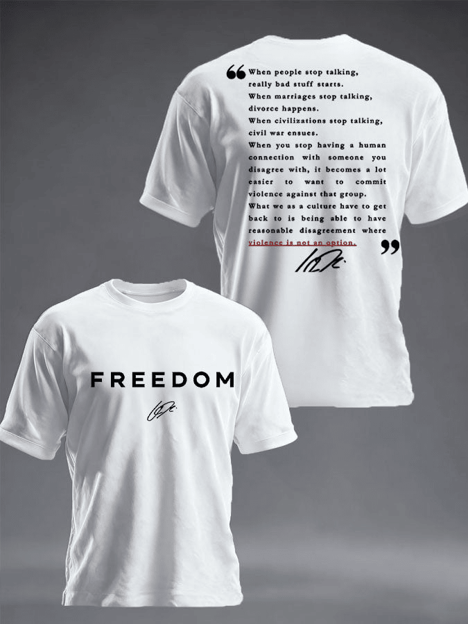 Charlie Kirk Freedom White Sirt Charlie Kirk Quote Tee Patriotic Best Gift for Him.