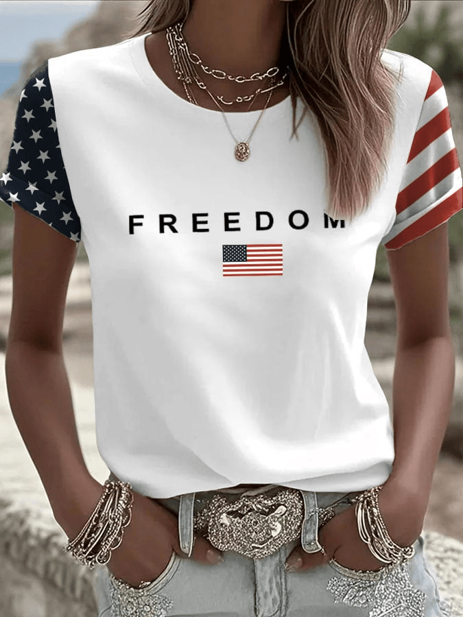 Charlie Memorial Tee Charlie Kirk Freedom American Flag Print Casual T-Shirt.