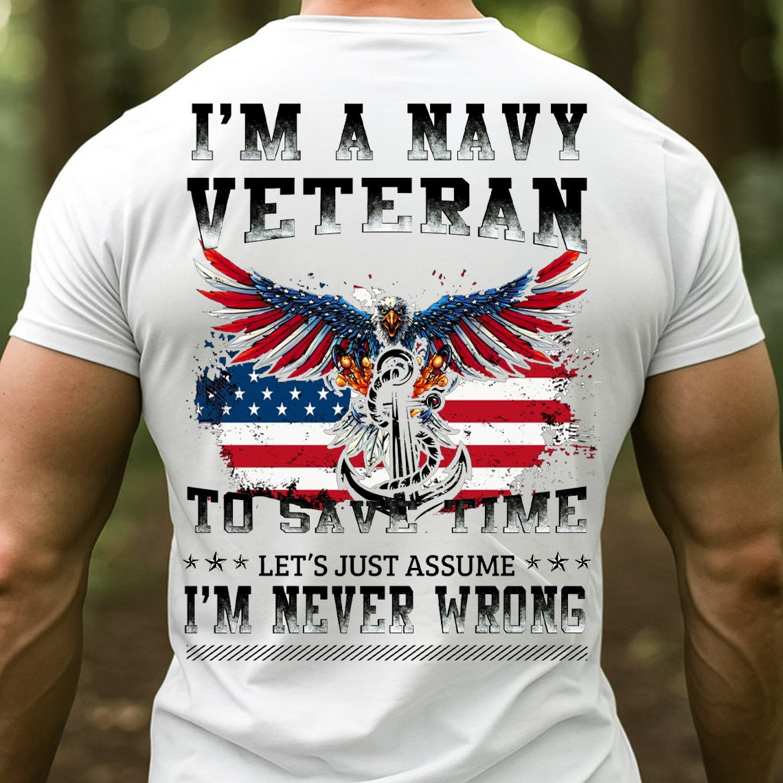Eagle Anchor Navy Veteran T-Shirt To Save Time I’m Never Wrong Funny Patriotic Tee For Veterans.