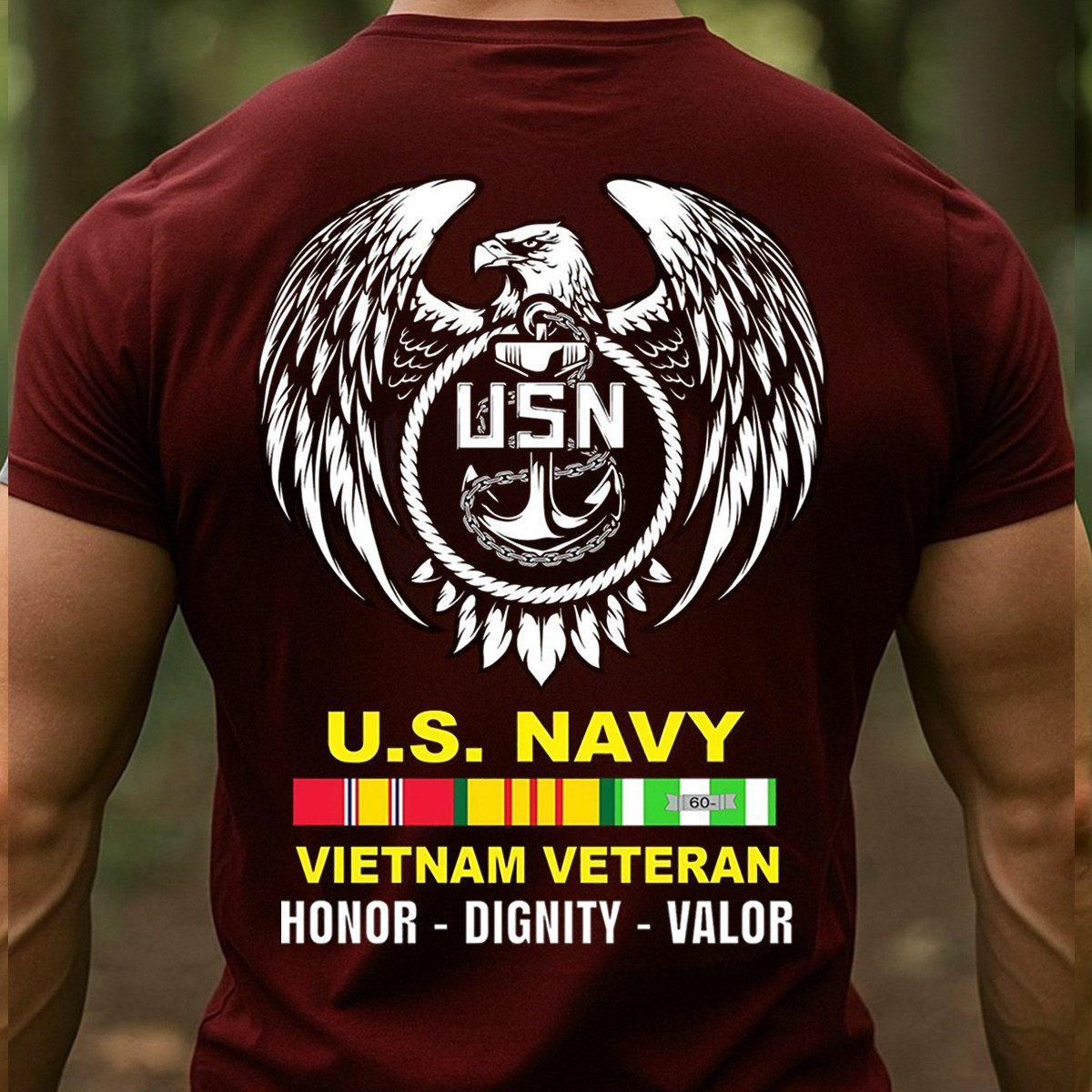 Eagle Anchor U.S. Navy Vietnam Veteran T-Shirt Honor Dignity Valor Pride Veteran Apparel Gifts.
