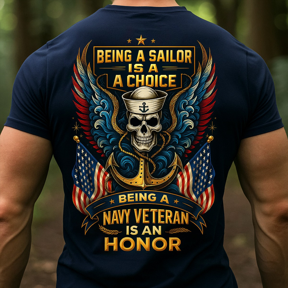 Eagle Skull USA Flag Veteran T-Shirt Being A Navy Veteran Is An Honor US Navy Military Shirt.