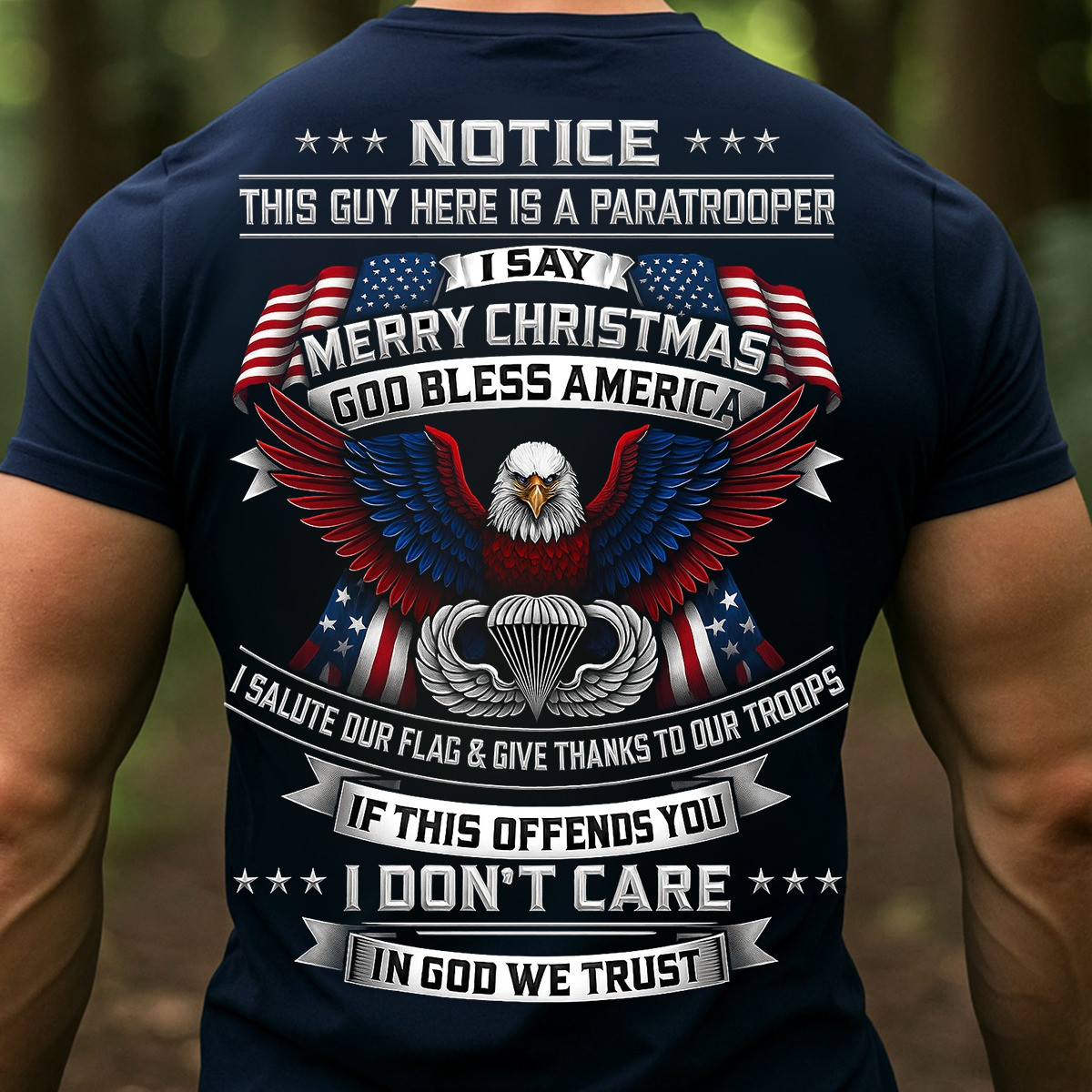 Eagle USA Flag Merry Christmas Shirt Paratrooper God Bless America Patriotic Apparel Gifts.