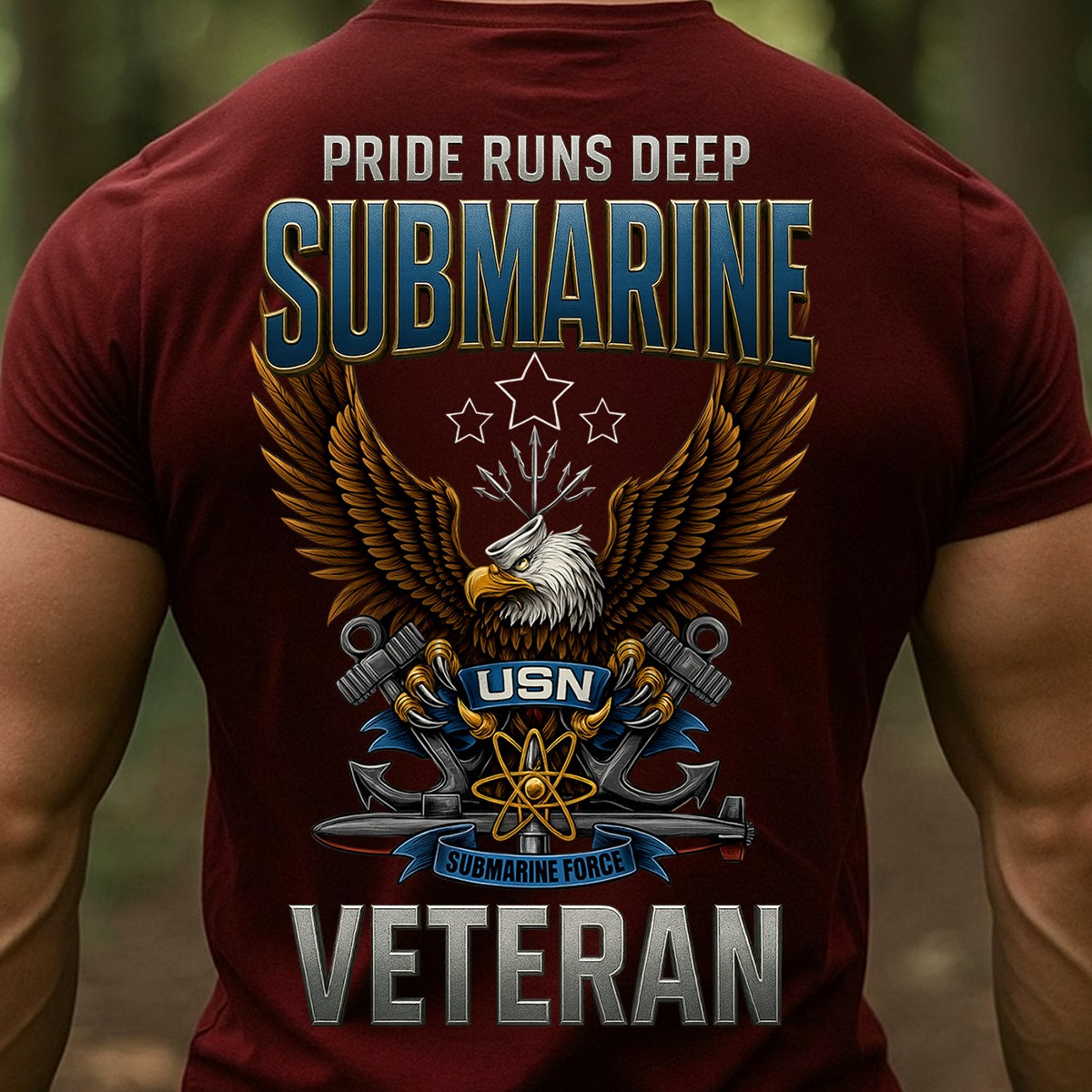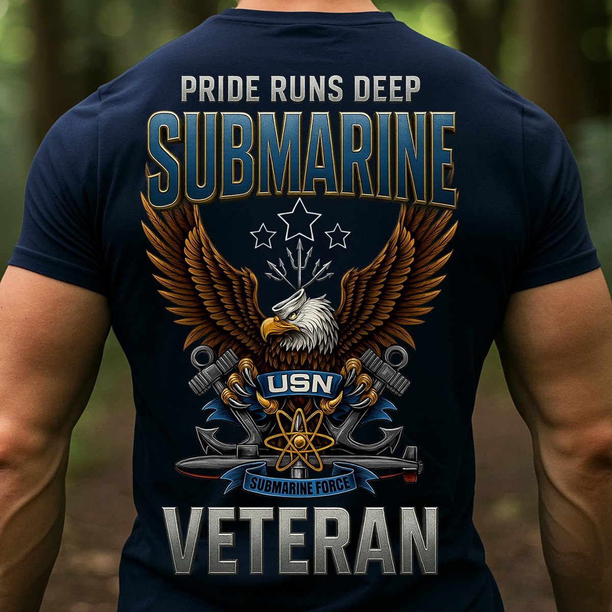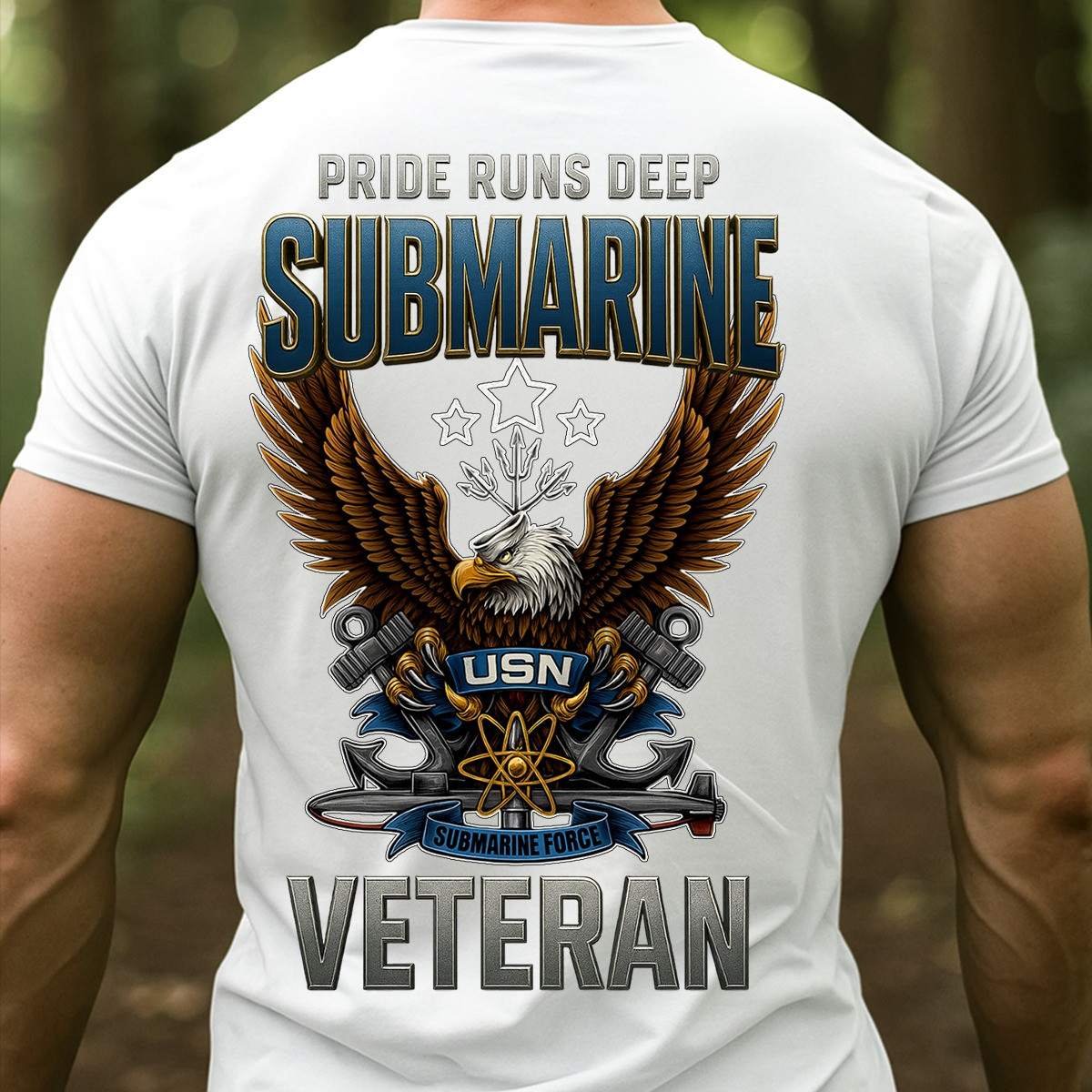 Eagle USN Veteran T-Shirt Pride Runs Deep Submarine Proud Navy Military Clothes Gift Ideas.