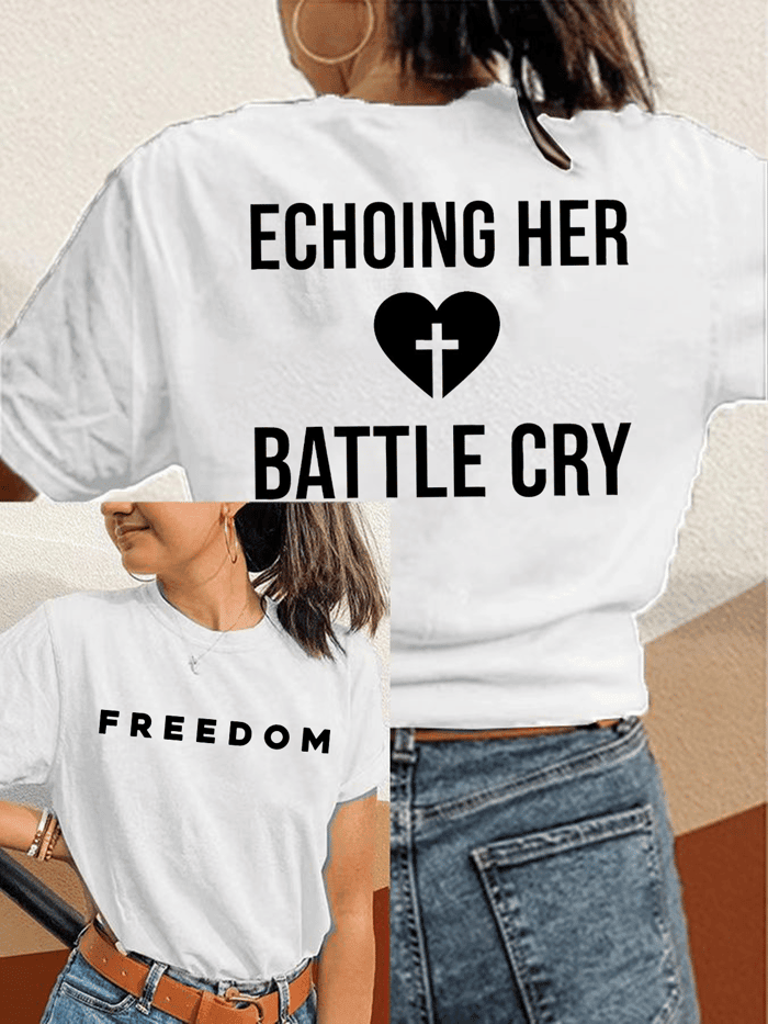 Freedom Print Crew Neck T-Shirt Echoing Her Battle Cry Shirt Tribute Charlie Kirk Gift