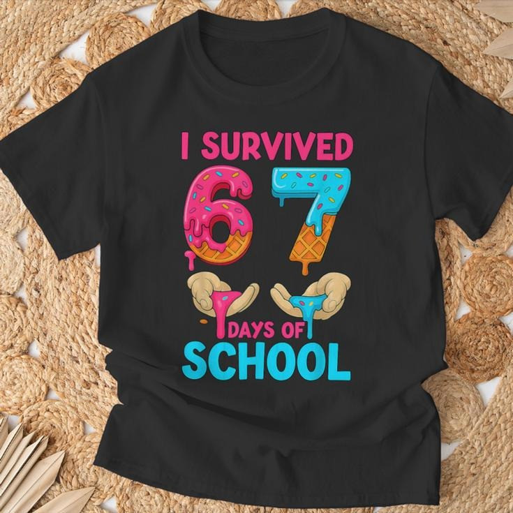 I Survived 67 Days of School T-Shirt 67 Meme Classroom Apparel Humor Gifts For Boys.