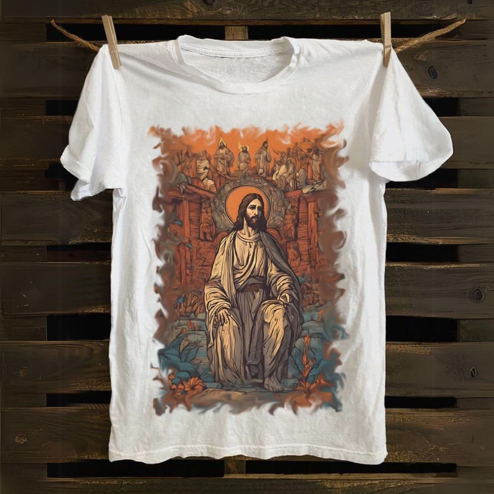Jesus Christ Knees Bow Legacy T-Shirt Holy Art Design Christian Faith Christmas Gift.