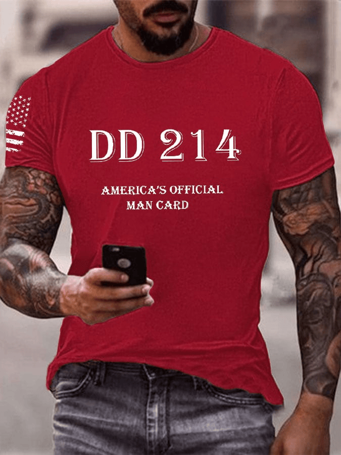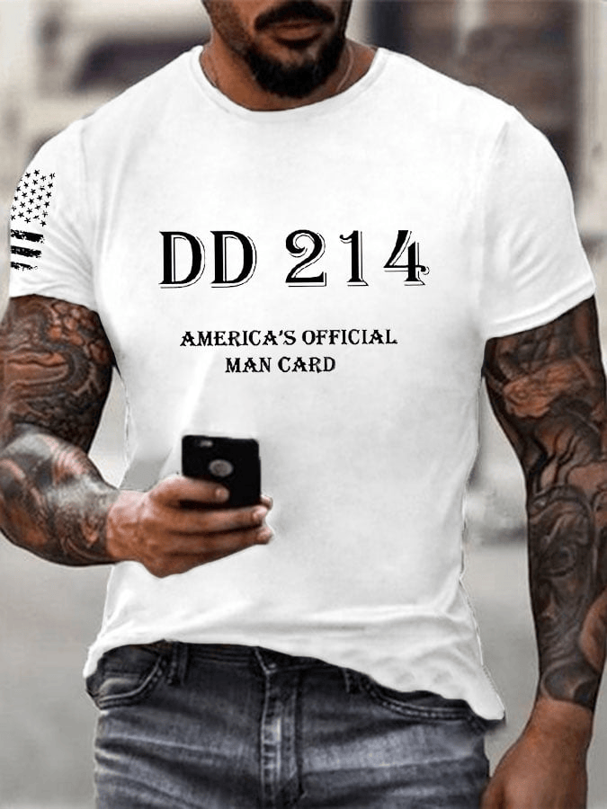 Men’s DD214 America’s Official Man Card T-Shirt USA Veterans Day Outfit Dad Gift.