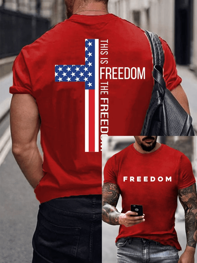 Men’s Freedom Print Casual T-Shirt Freedom Charlie Kirk Red Shirt.