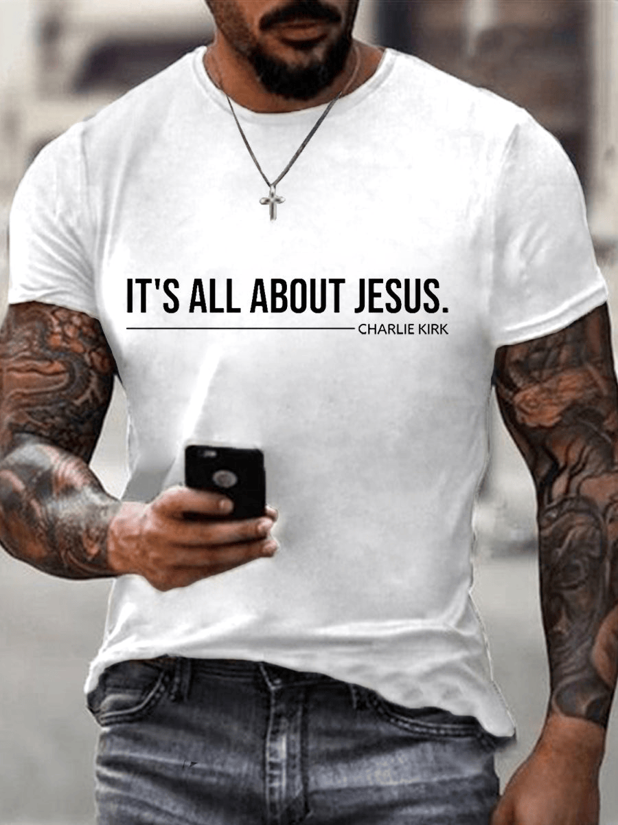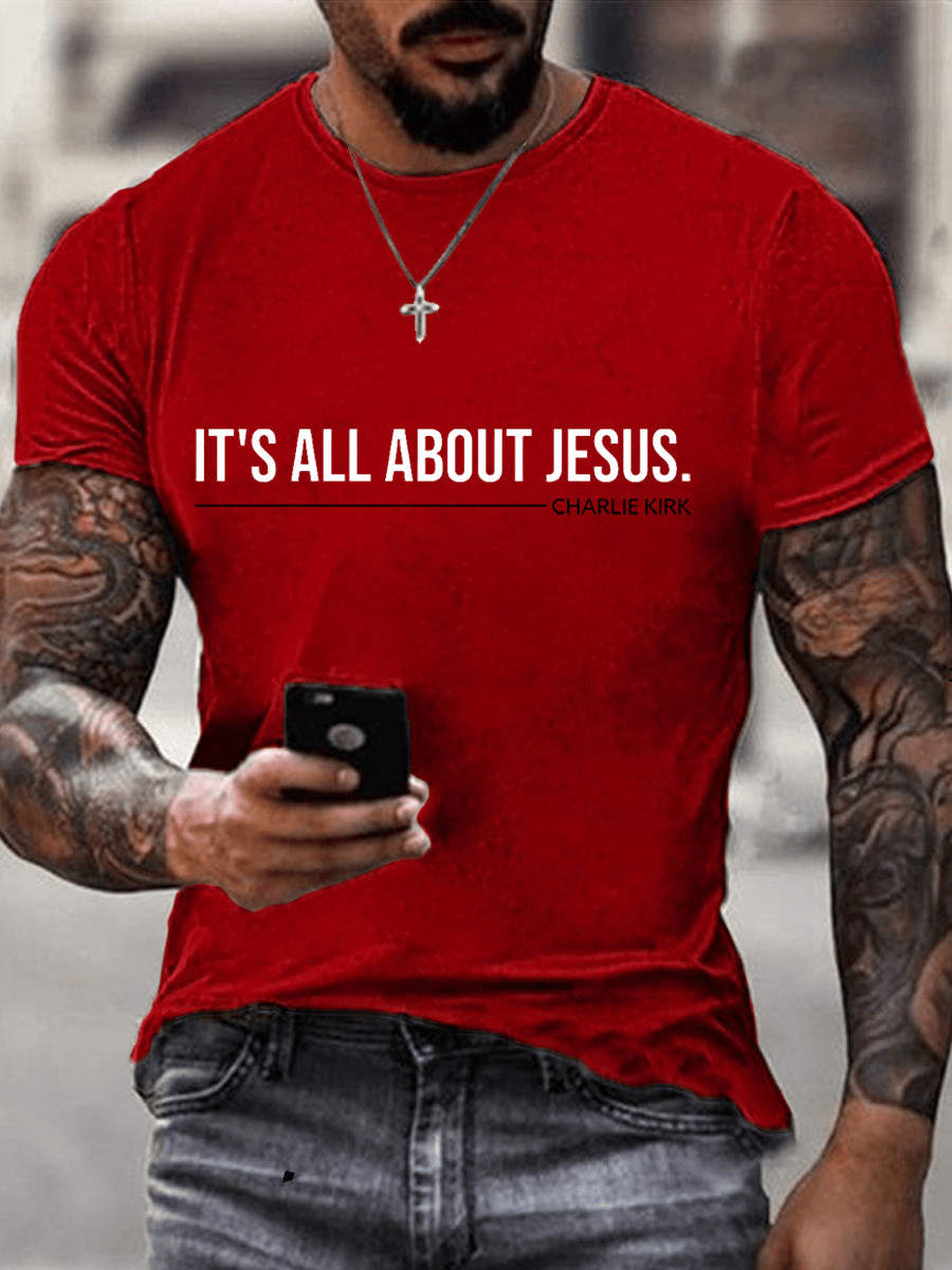 Men’s It’s All About Jesus Charlie Kirk Tee RIP Charlie Kirk Memorial Tribute Gift for Husband