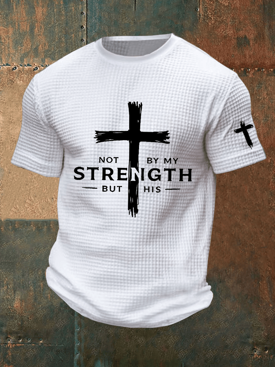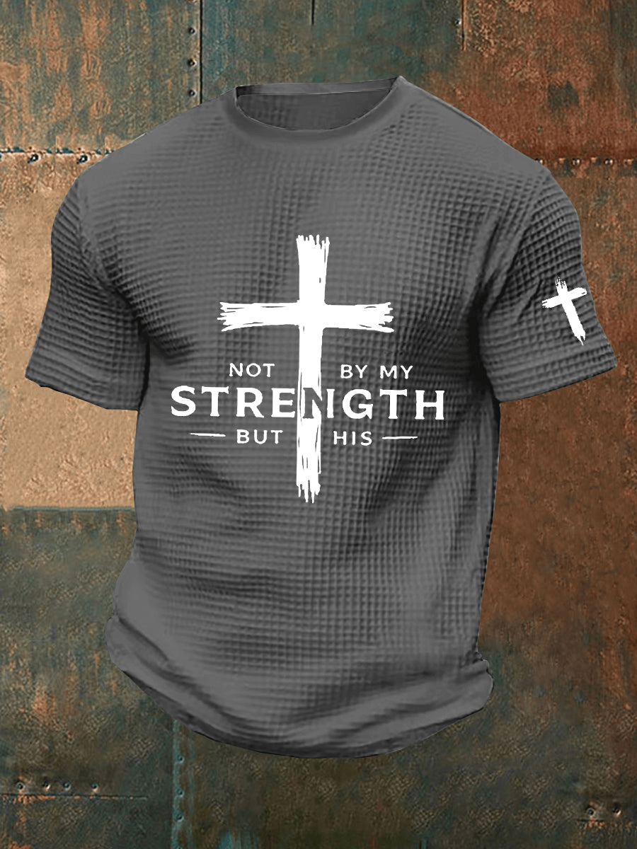 Men’s Not By My Strength But His Waffle Print T-Shirt Christian Gift for Dad.