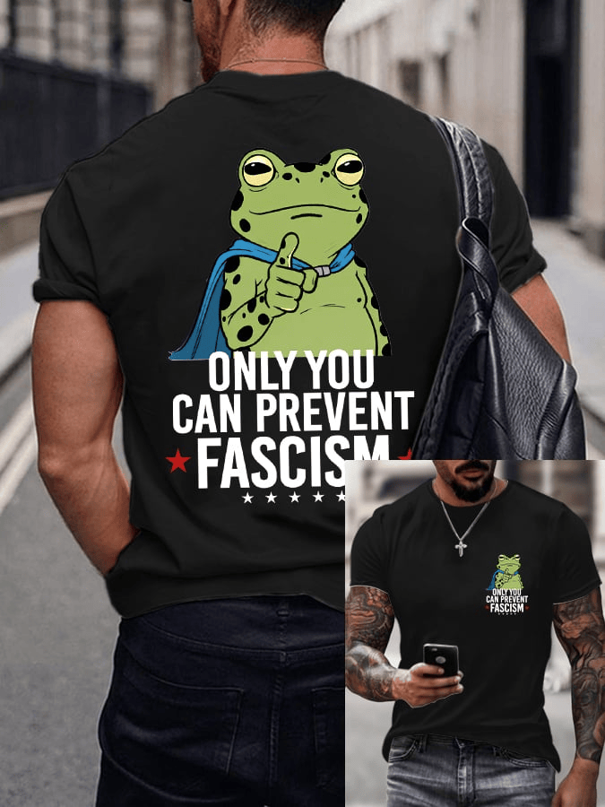 ONLY YOU CAN PREVENT FASCISM Vintage Graphic Print T-Shirt Resist Frog Shirt Gift for Dad