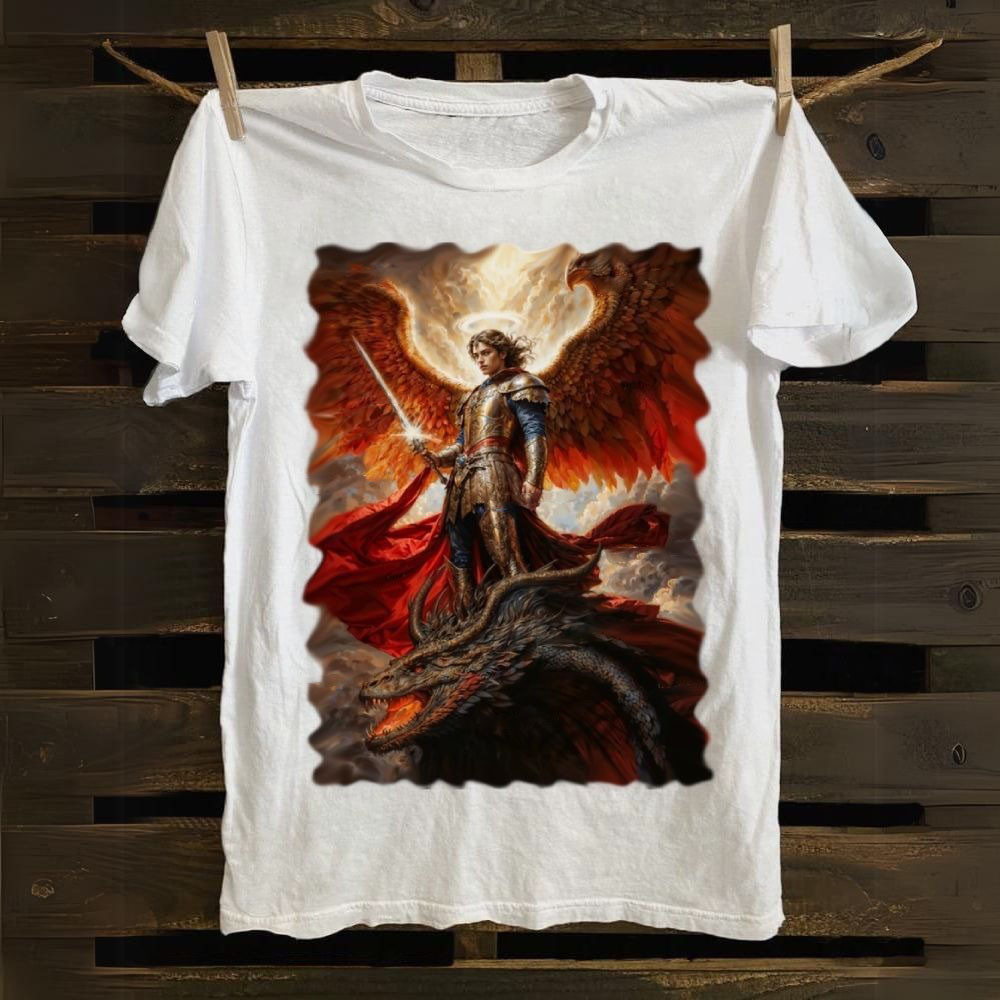 Saint Michael Archangel T-Shirt Fiery Warrior Angel Art Christian Fantasy Christmas Gift