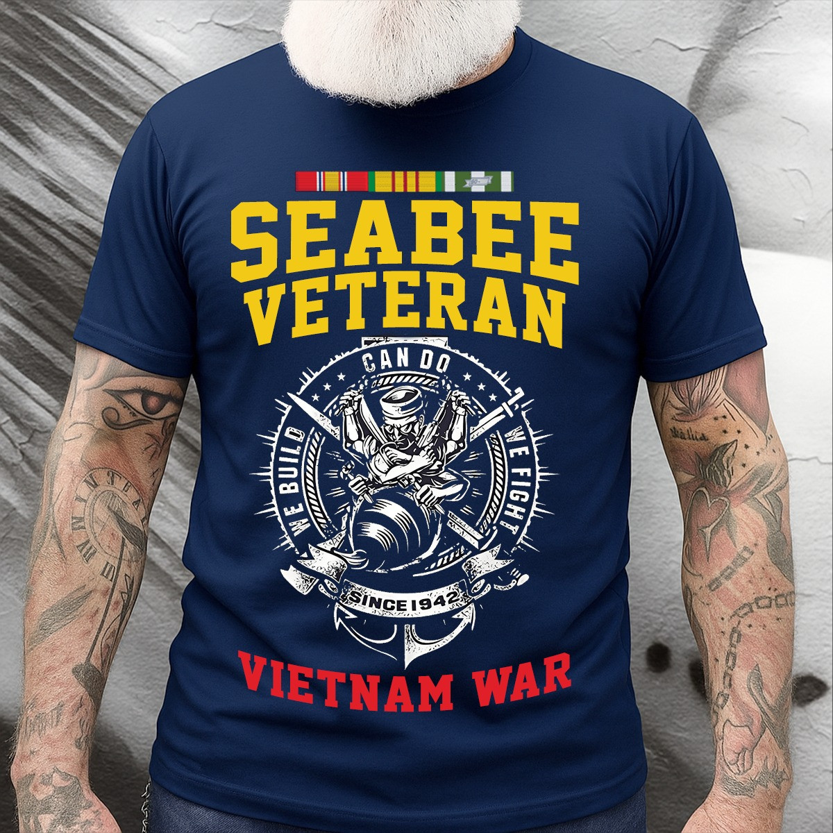 Seabee Veteran Vietnam War T-Shirt Navy Bee With Weapons Patriotic Military Tee Gifts For Men.