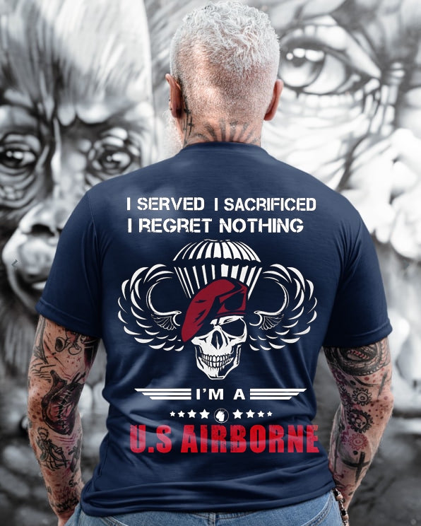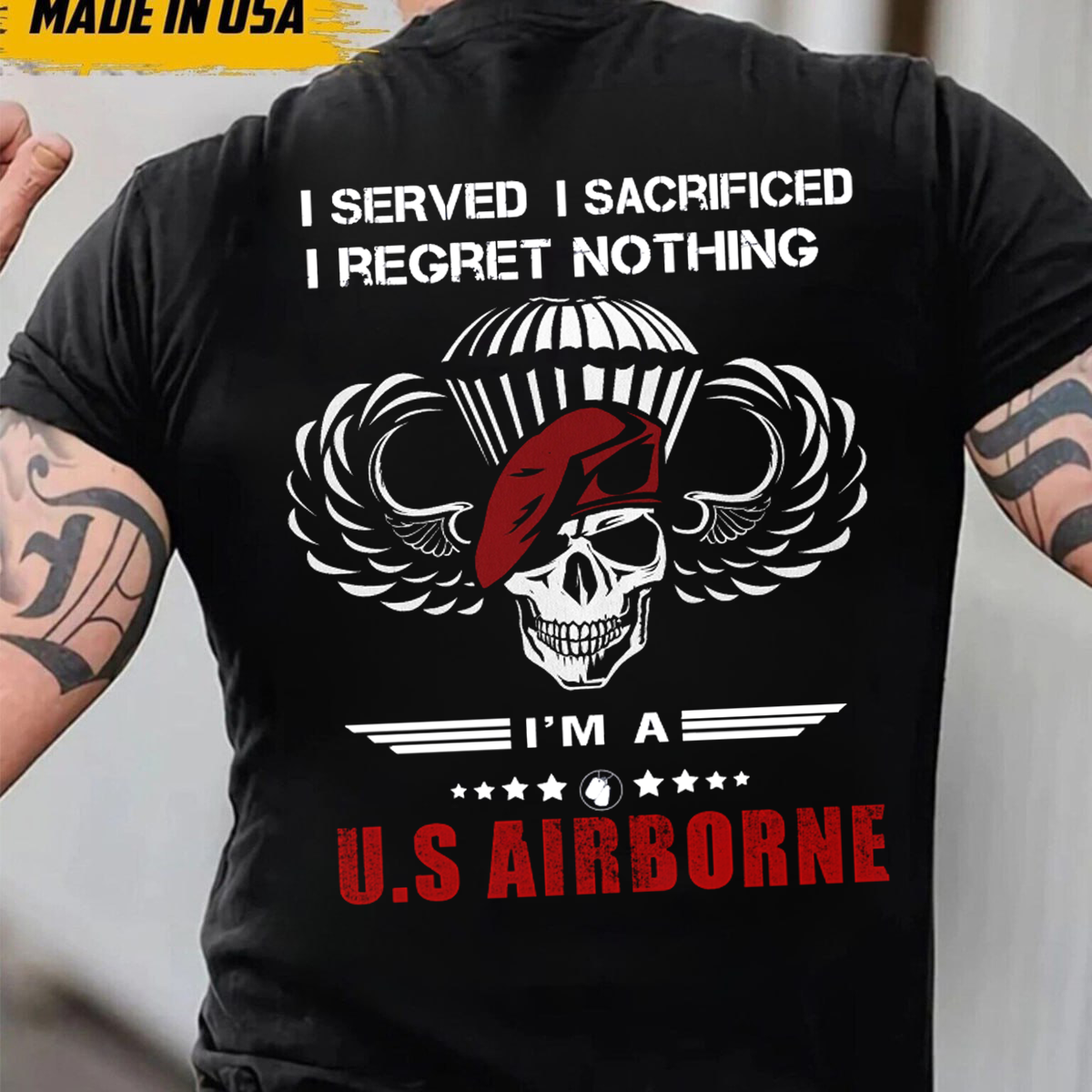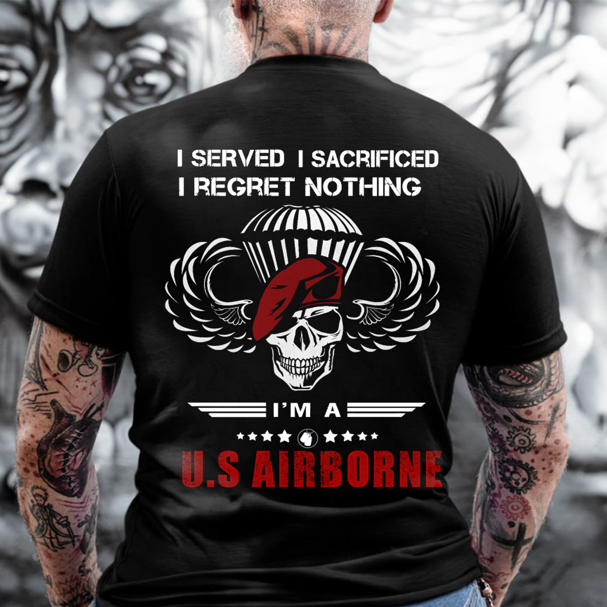 Served Sacrificed but Regret Nothing Airborne T-Shirt U.S Airborne Skull Design Perfect Gift for Veterans Day