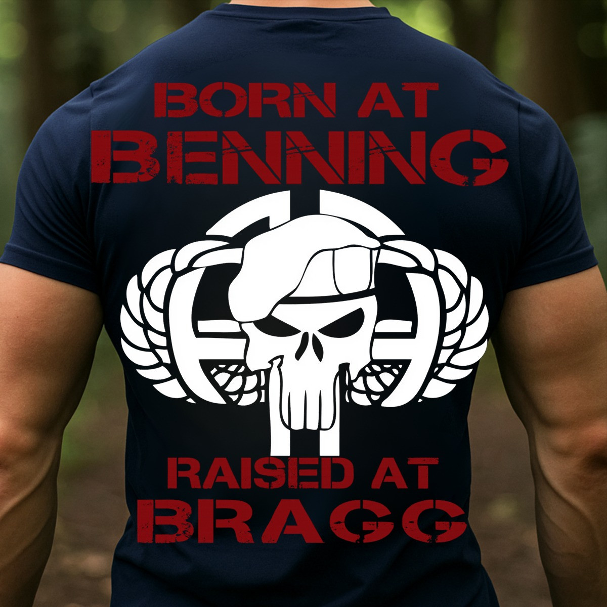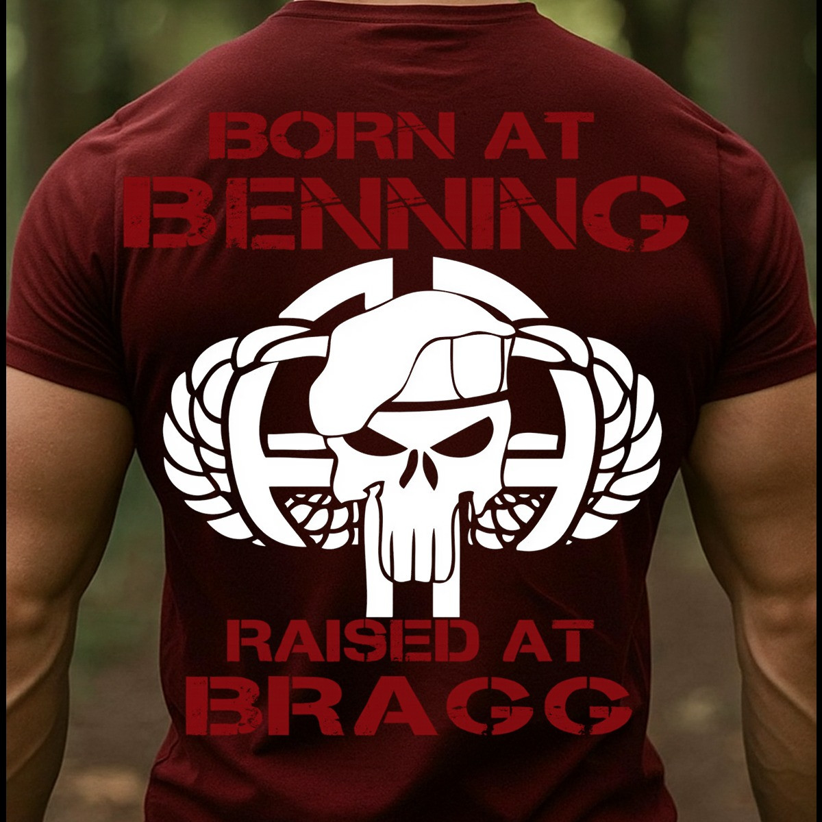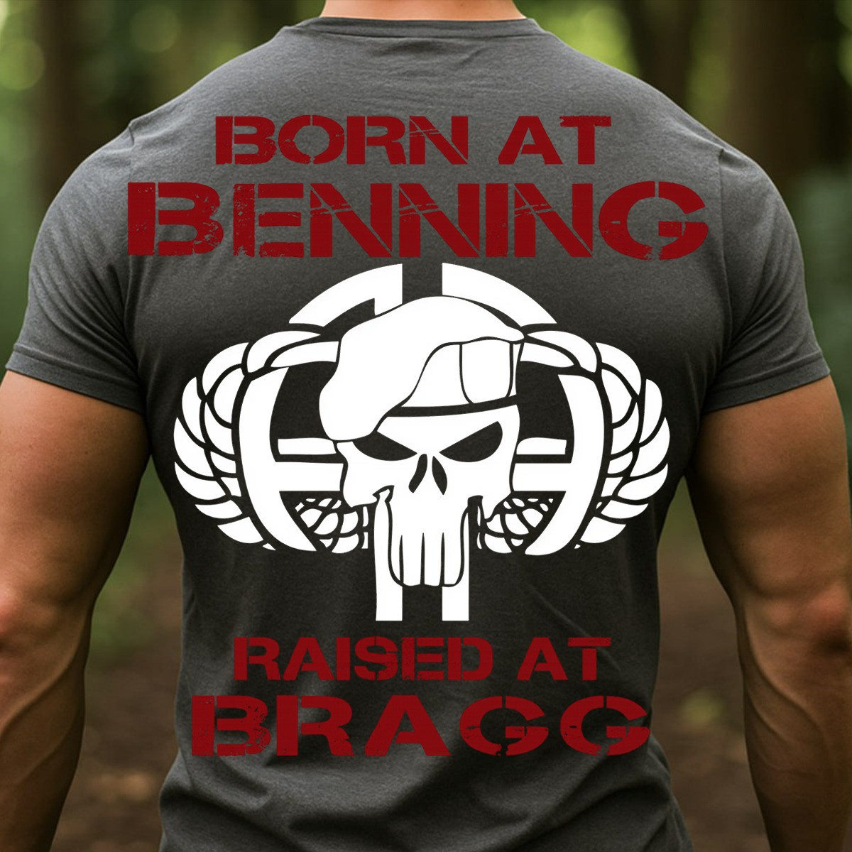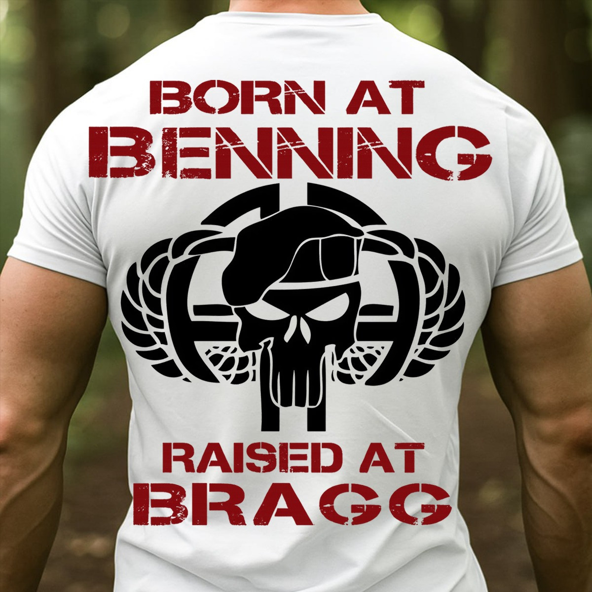 Skull 82nd Airborne Shirt Born At Benning Raised At Bragg Military Veteran Tee Presents For Him.