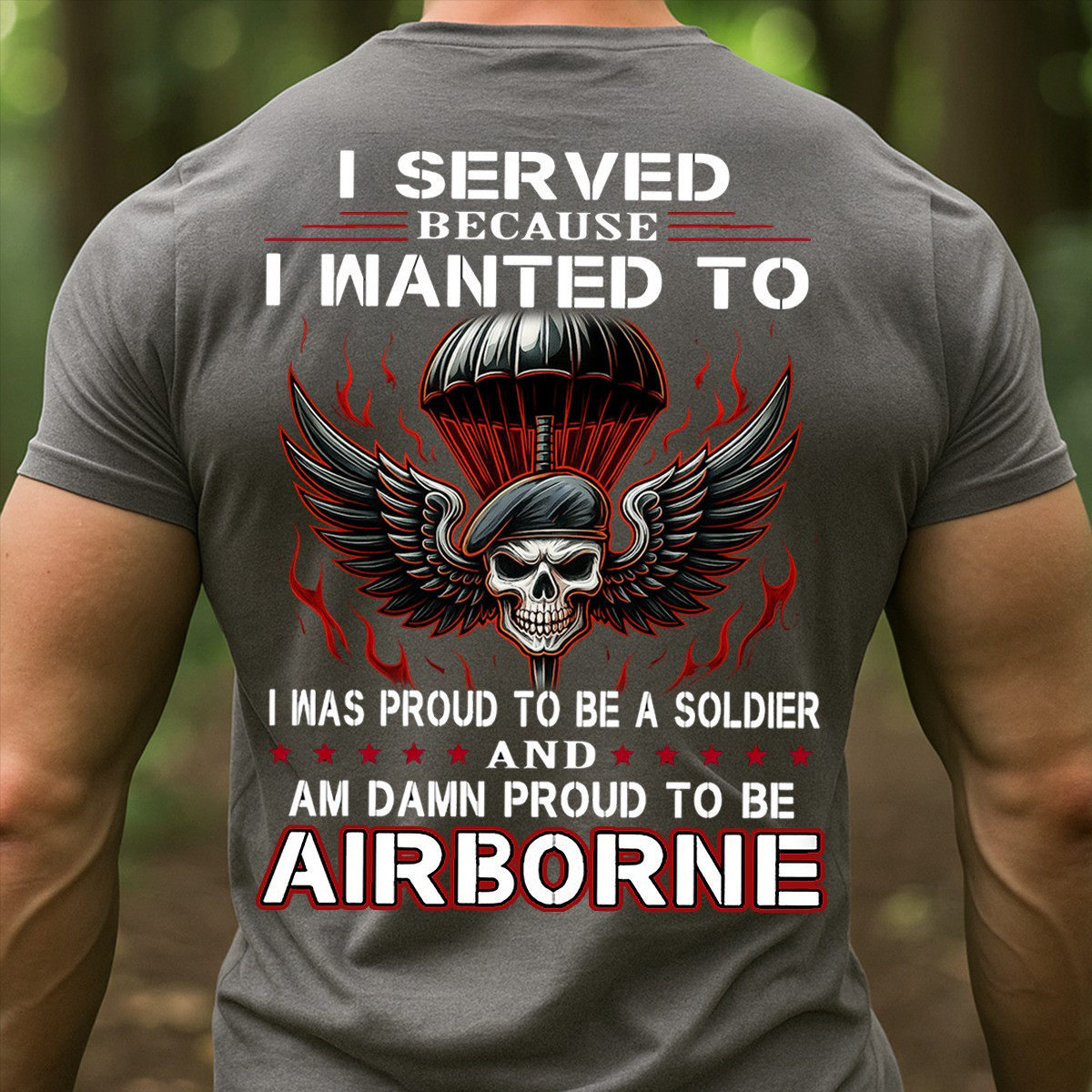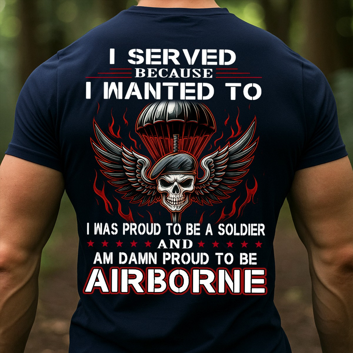 Skull Airborne Military T-Shirt I Served Because I Wanted To Proud Soldier Army Vet Tee For Men.