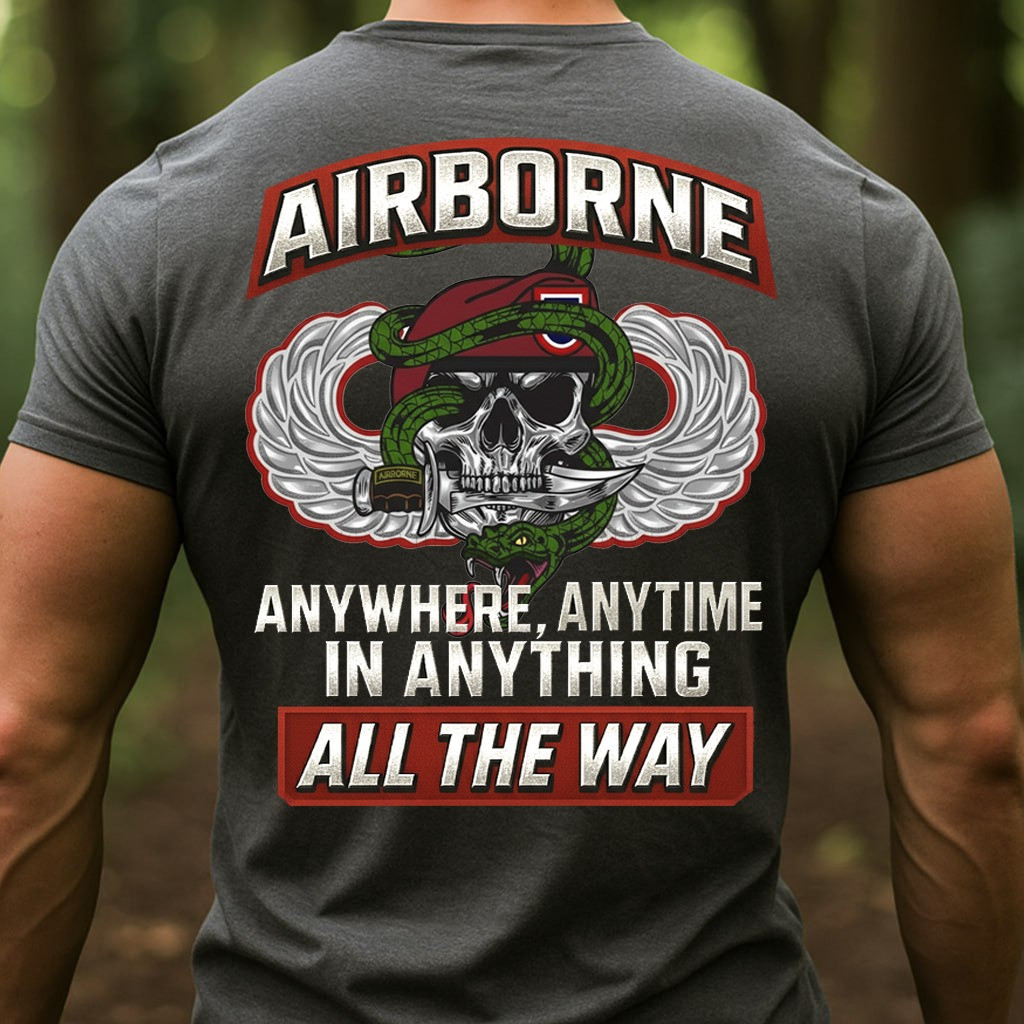 Skull Airborne Veteran T-Shirt Anywhere Anytime All The Way Clothes Presents For Veterans Day.