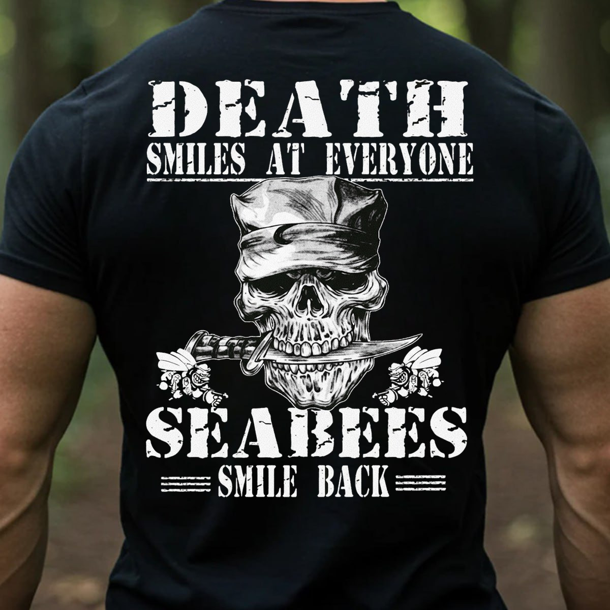 Skull Seabees Veteran T-Shirt Death Smiles At Everyone Military Navy Tee Patriotic Presents.