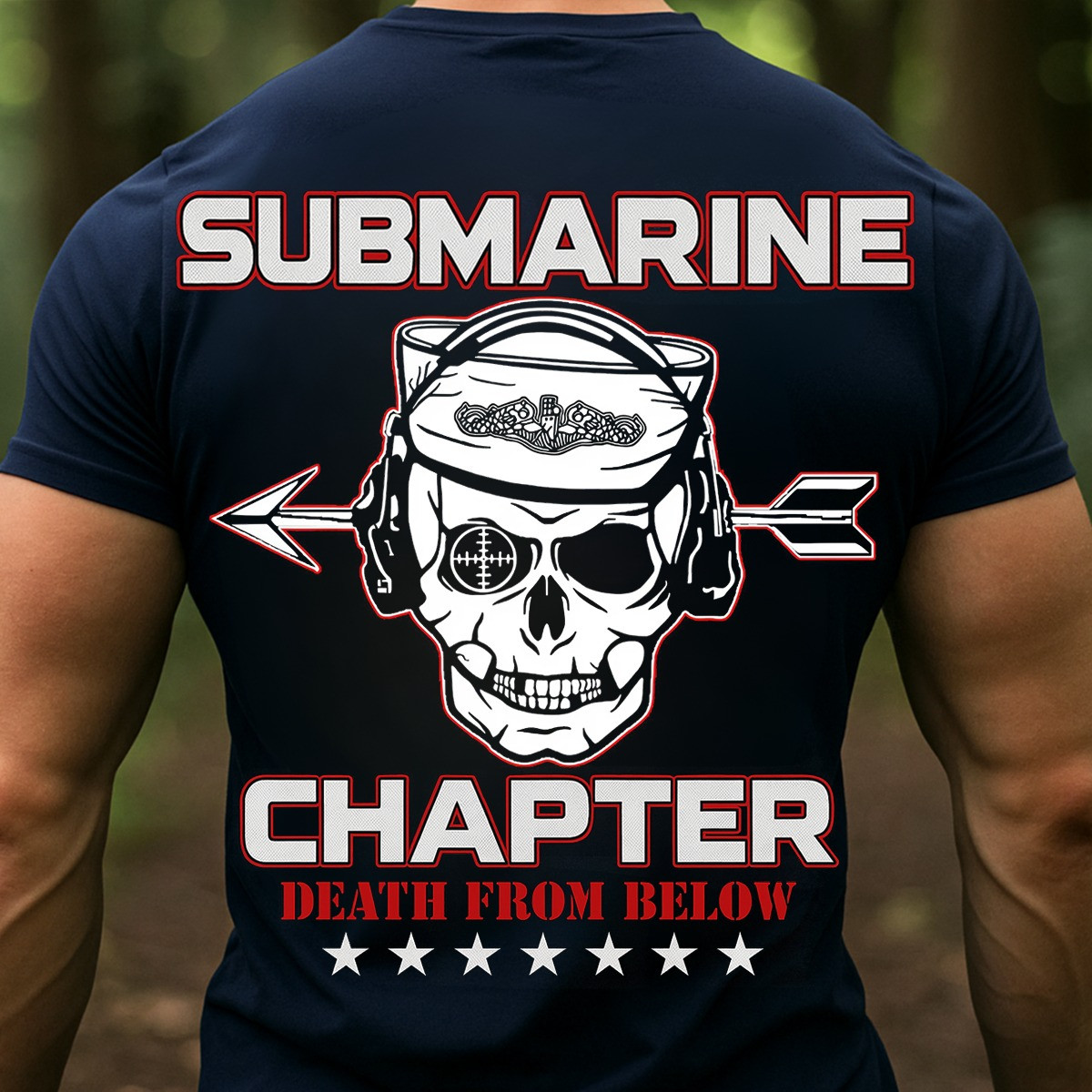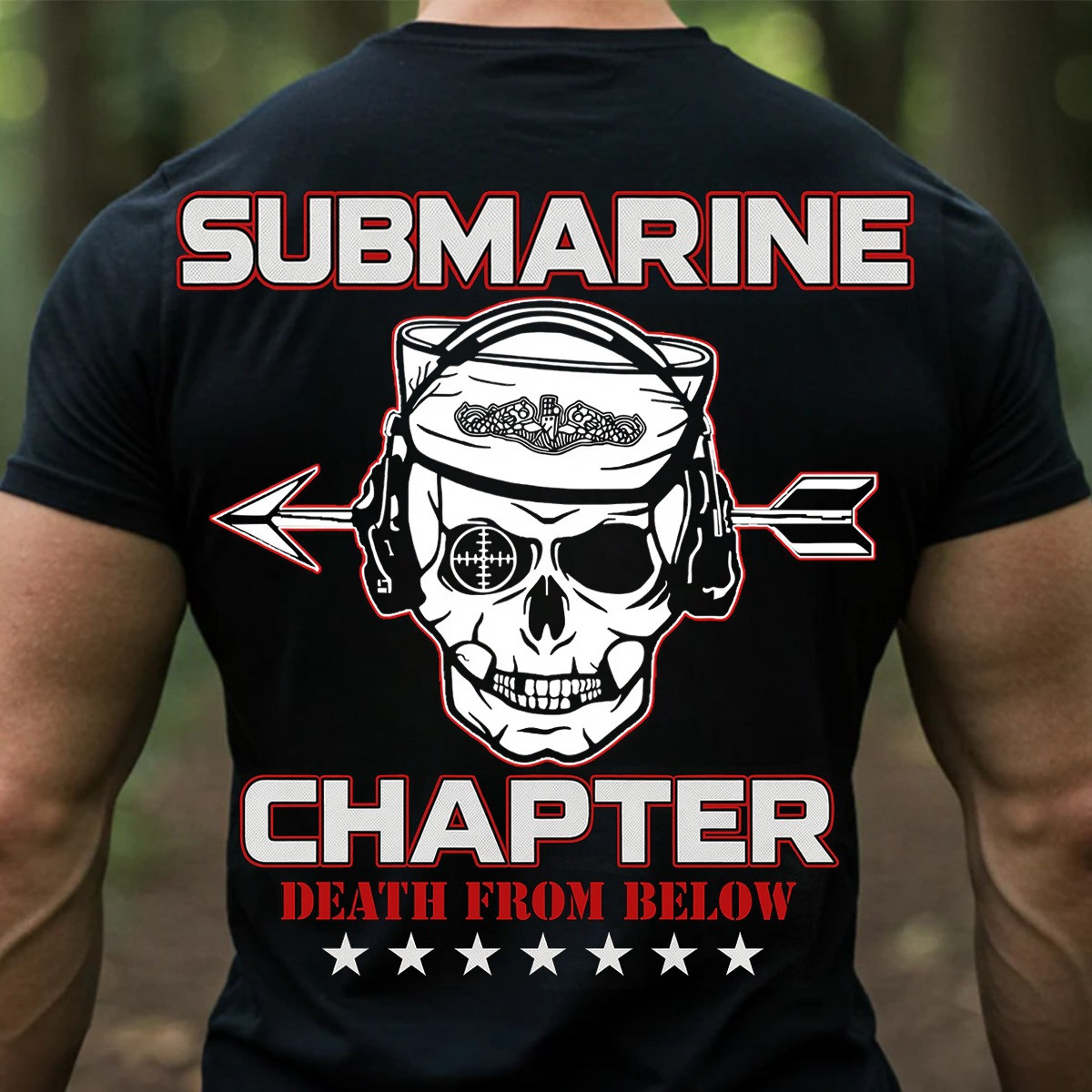 Skull Submarine T-Shirt Chapter Death From Below Navy Veteran Tee Military Submariner Gifts.