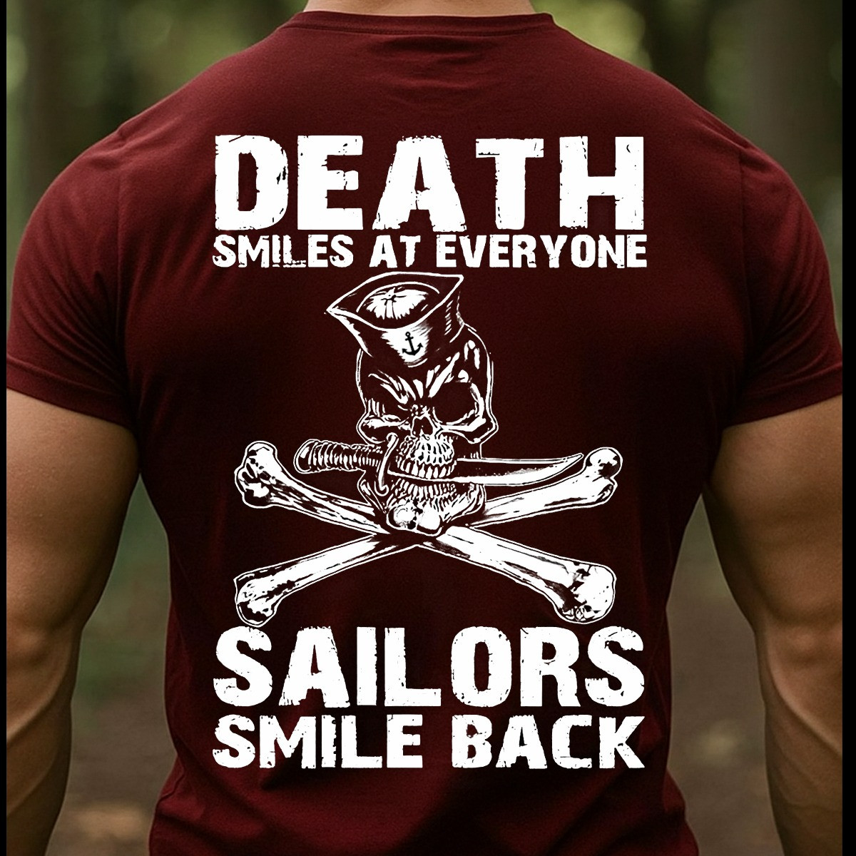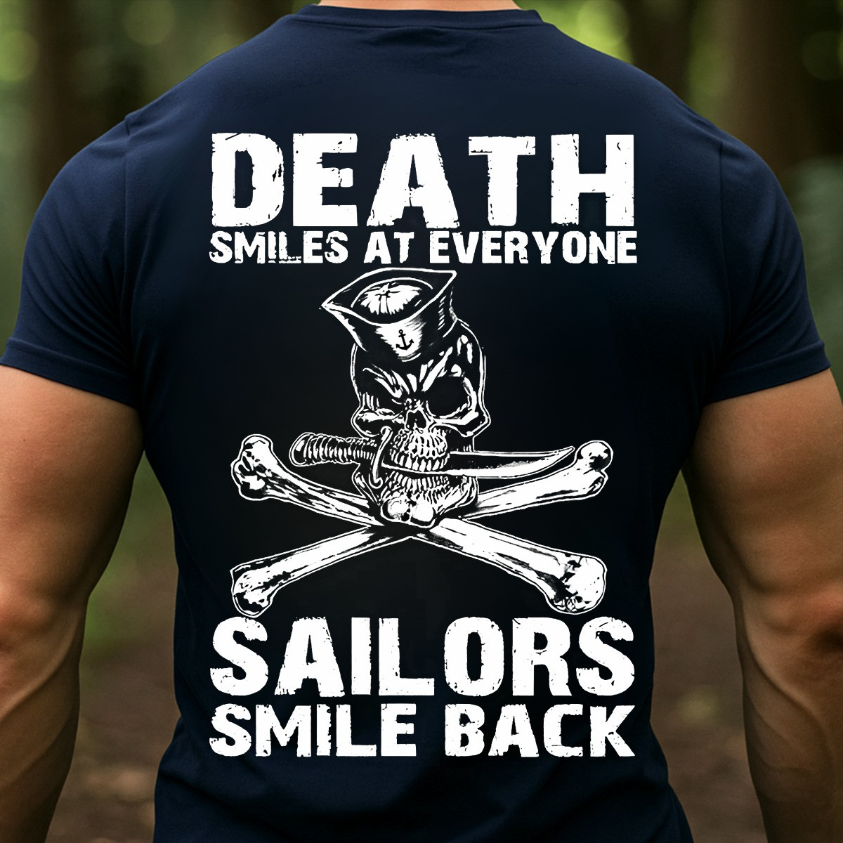 Skull US Navy Sailor T-Shirt Death Smiles At Everyone Sailors Smile Back Military Clothes Gifts.