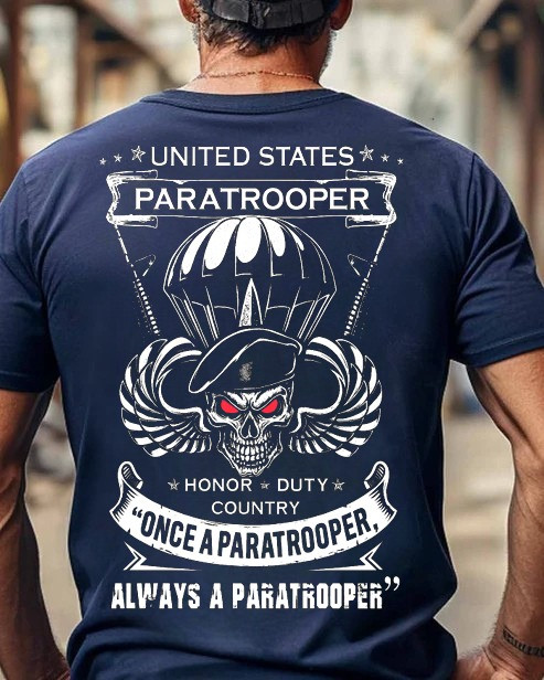 Skull Wings Paratrooper Veteran T-Shirt Once A Paratrooper Military Patriotic Tee Gift Ideas.
