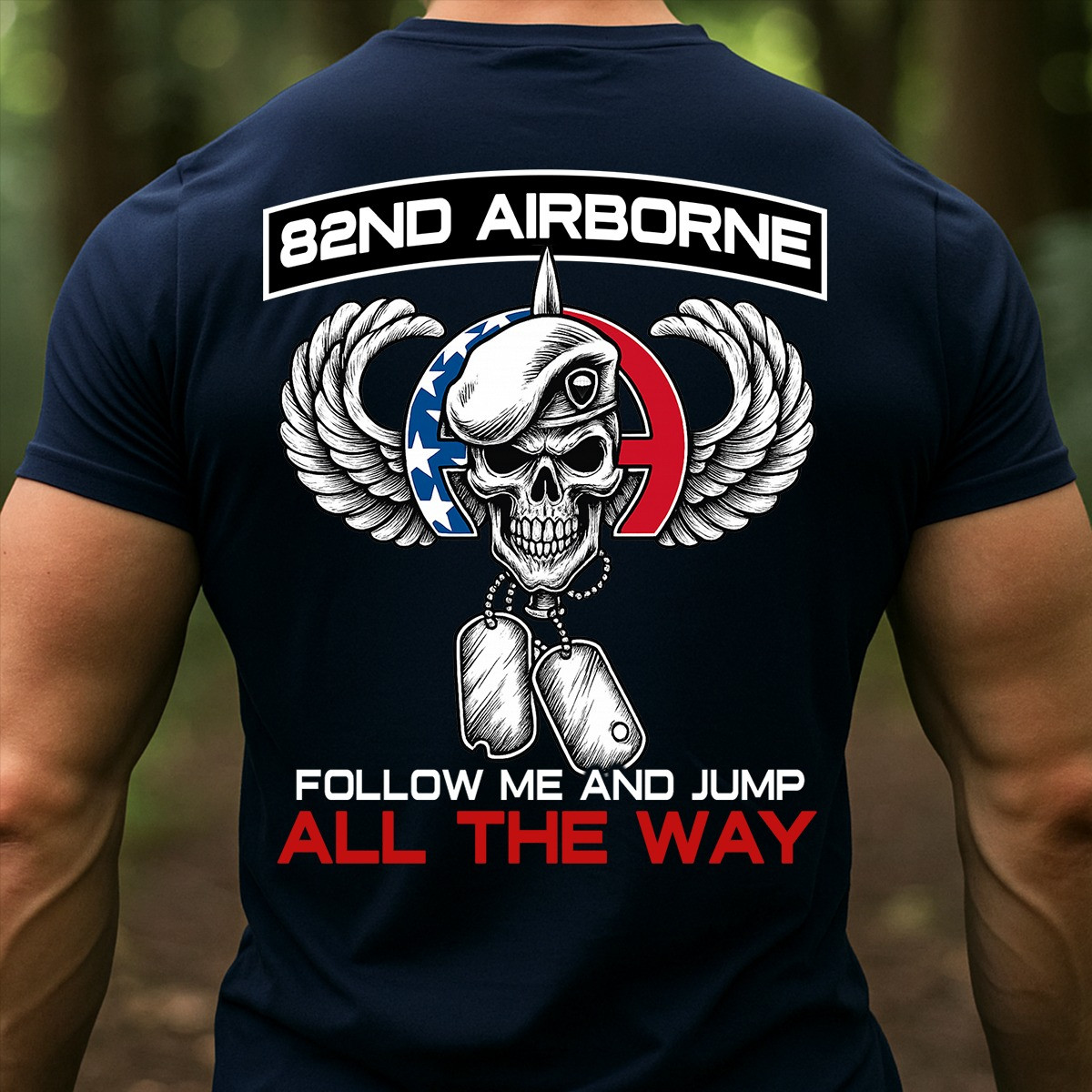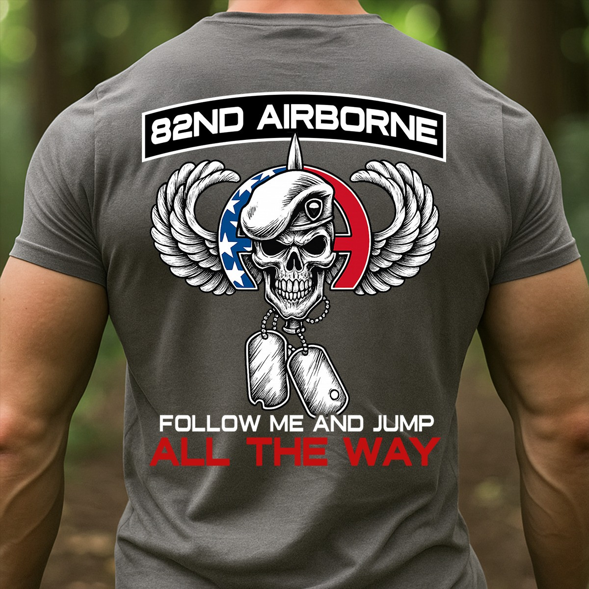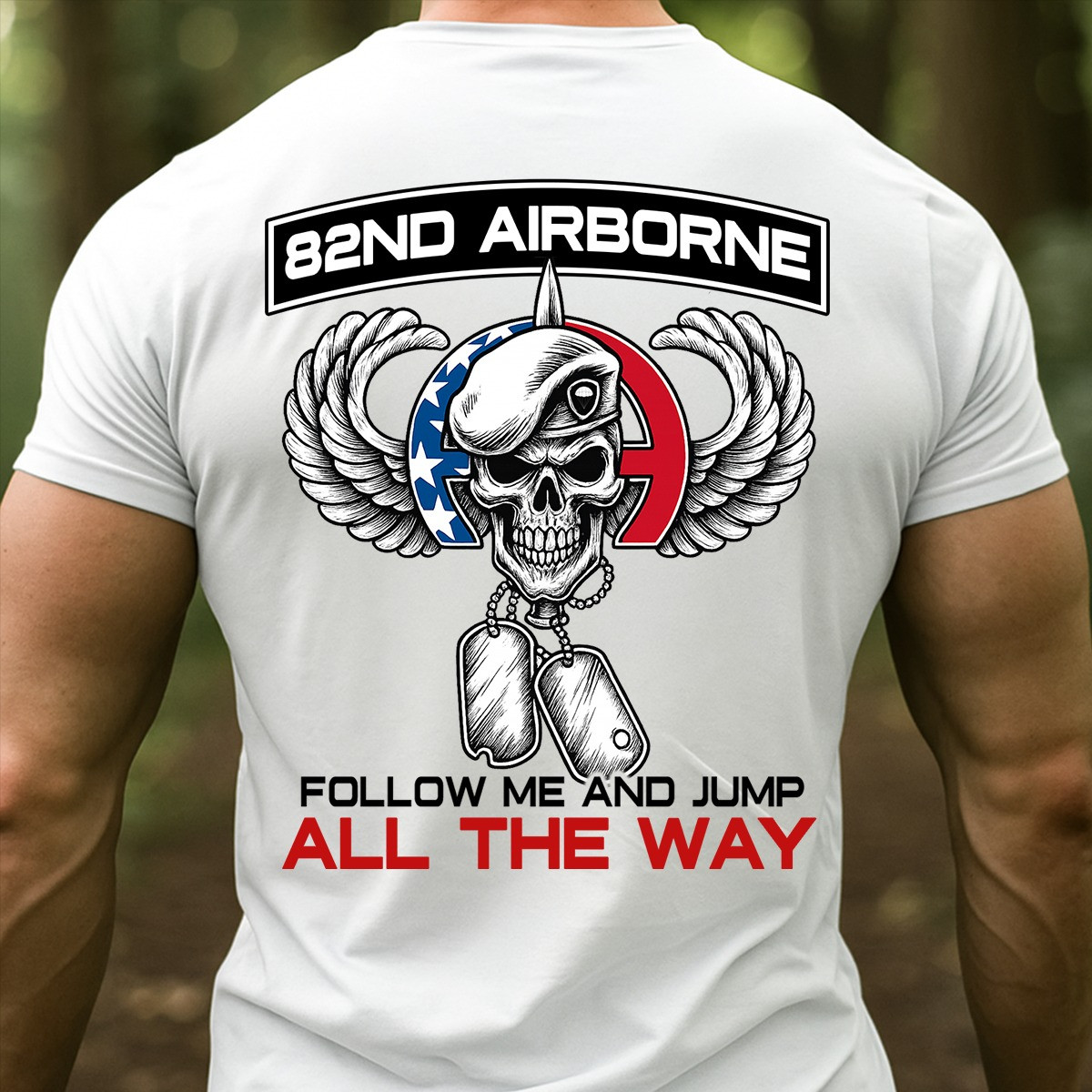 Skull With Dog Tag 82nd Airborne Veteran T-Shirt Follow Me And Jump Clothing Patriotic Gifts.