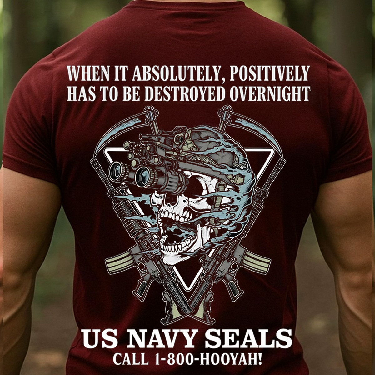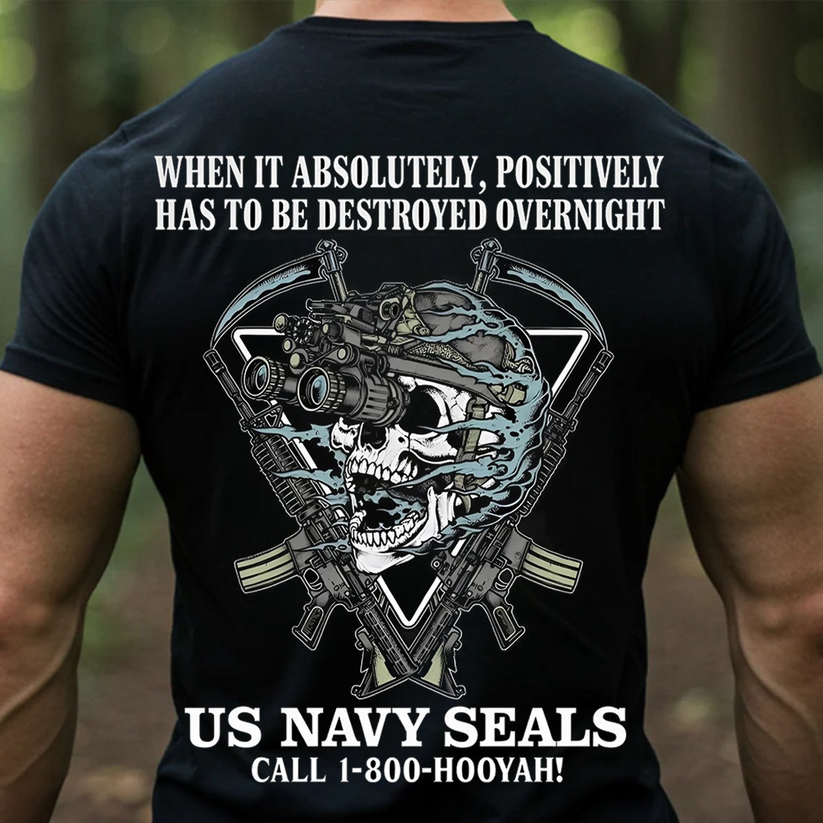 Skull With Guns US Navy Seals T-Shirt Call 1-800 Hooyal Military Combat Clothes Veteran Gifts.