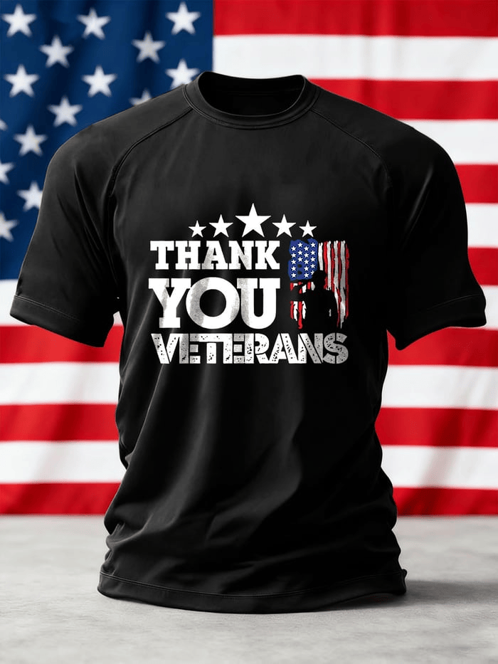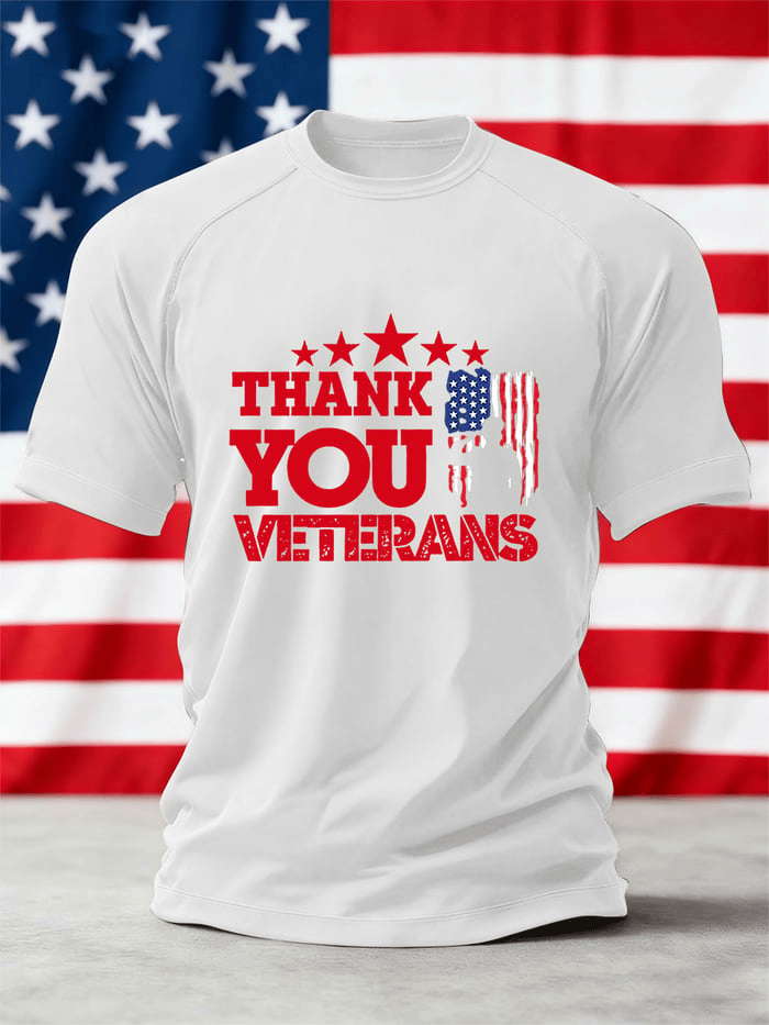 Thank You Veterans Shirt Veterans Day Printed Crew Neck Short Sleeve T-Shirt Appreciation Gift for Husband.