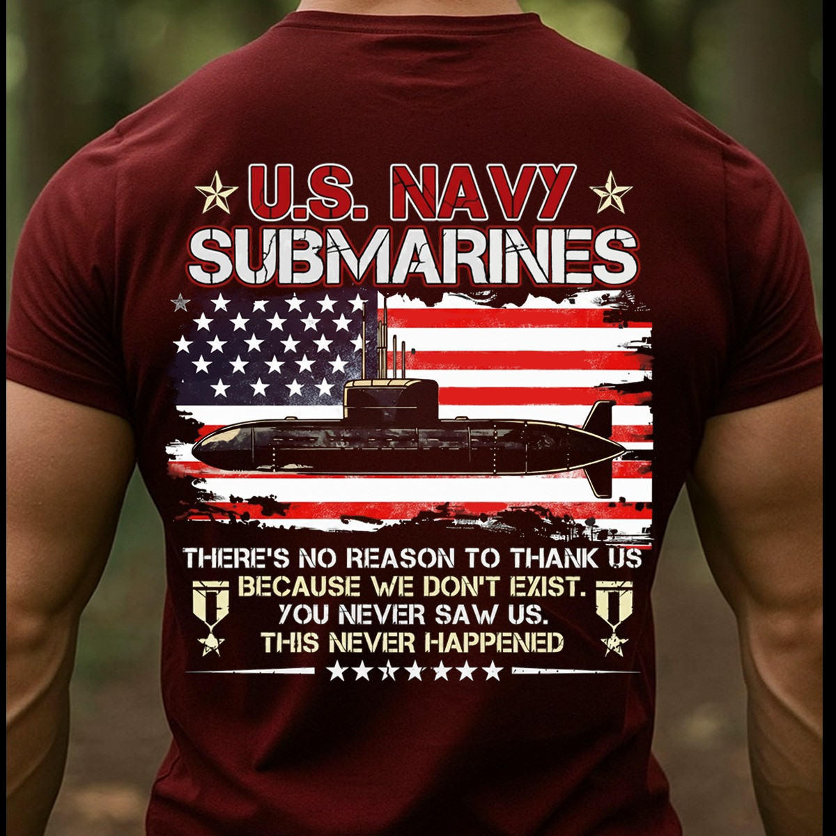 U.S. Navy Submarines T-Shirt USA Flag This Never Happened Funny Quote Shirt Patriotic Gifts.