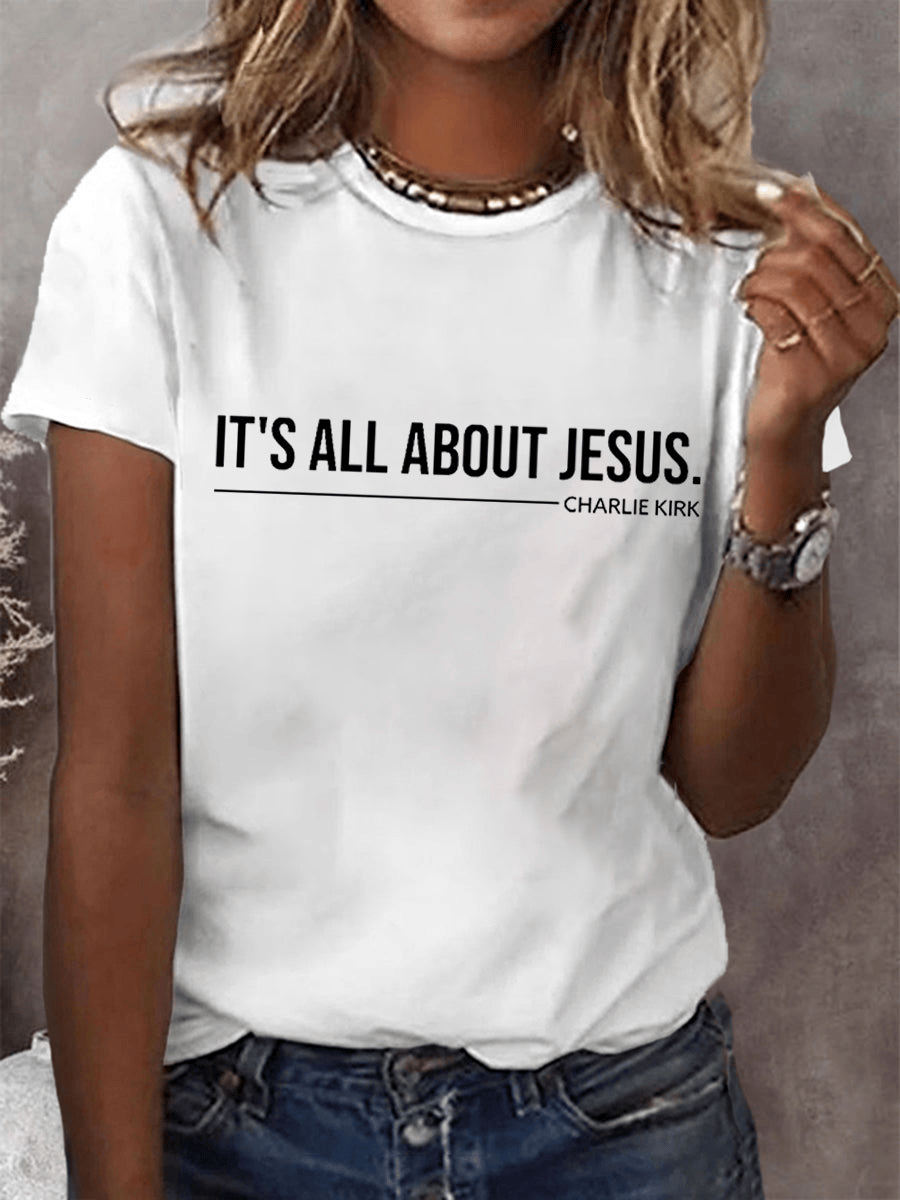 Women’s It’s All About Jesus – Charlie Kirk Tee Turning Point USA Merch Best Gift for Wife