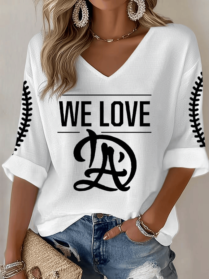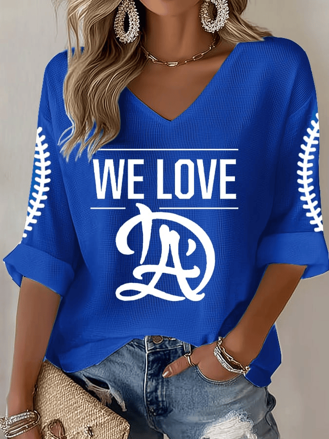 Dodger Champions Long Sleeve We Love LA Tee Women’s Baseball Print T-Shirt Dodger Merch.