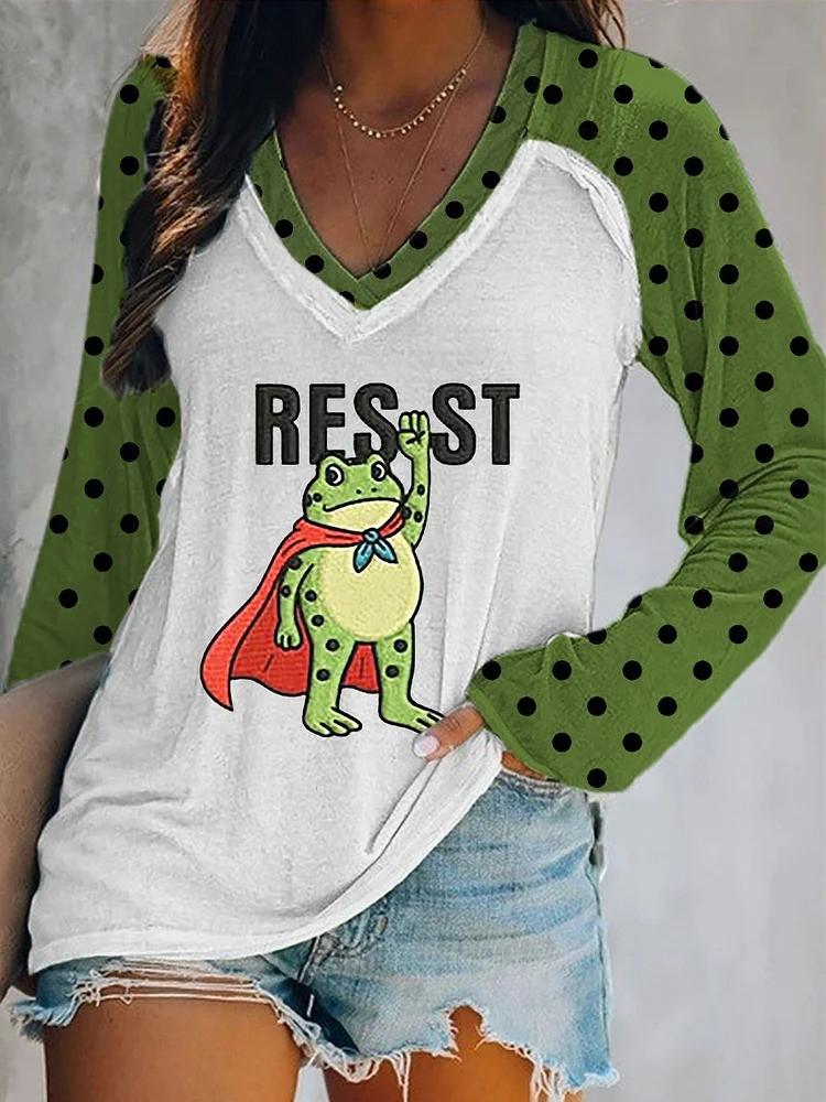 Resist Frog V-Neck Long Sleeve Shirt No Kings Animals Protest Merch Gifts.