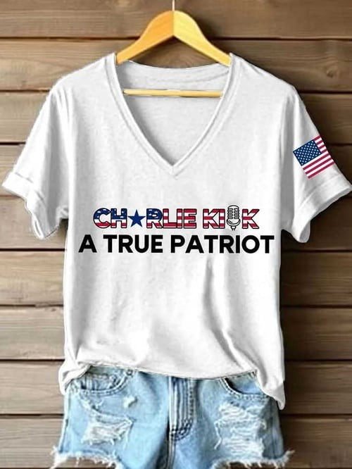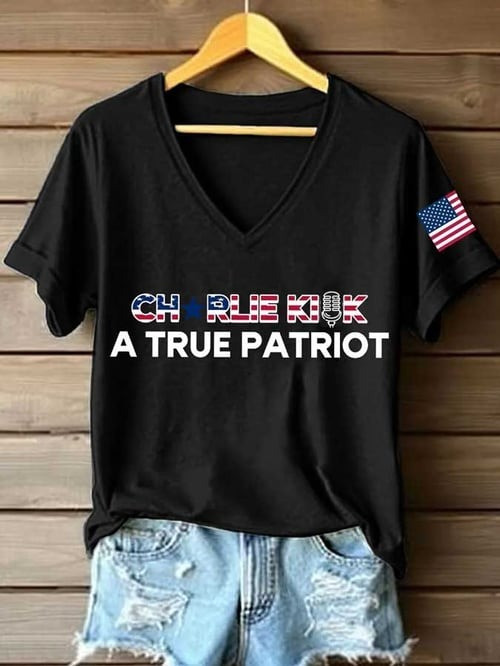 Charlie Kirk A True Patriot V-Neck Shirt USA TPUSA Freedom Charlie Kirk Shirt.