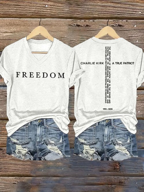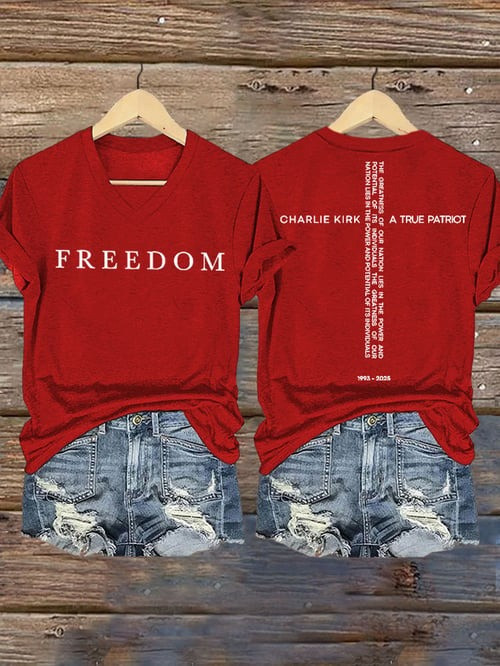 Charlie Kirk Freedom V-Neck Shirt A True Patriot RIP Charlie Kirk Clothing Gifts